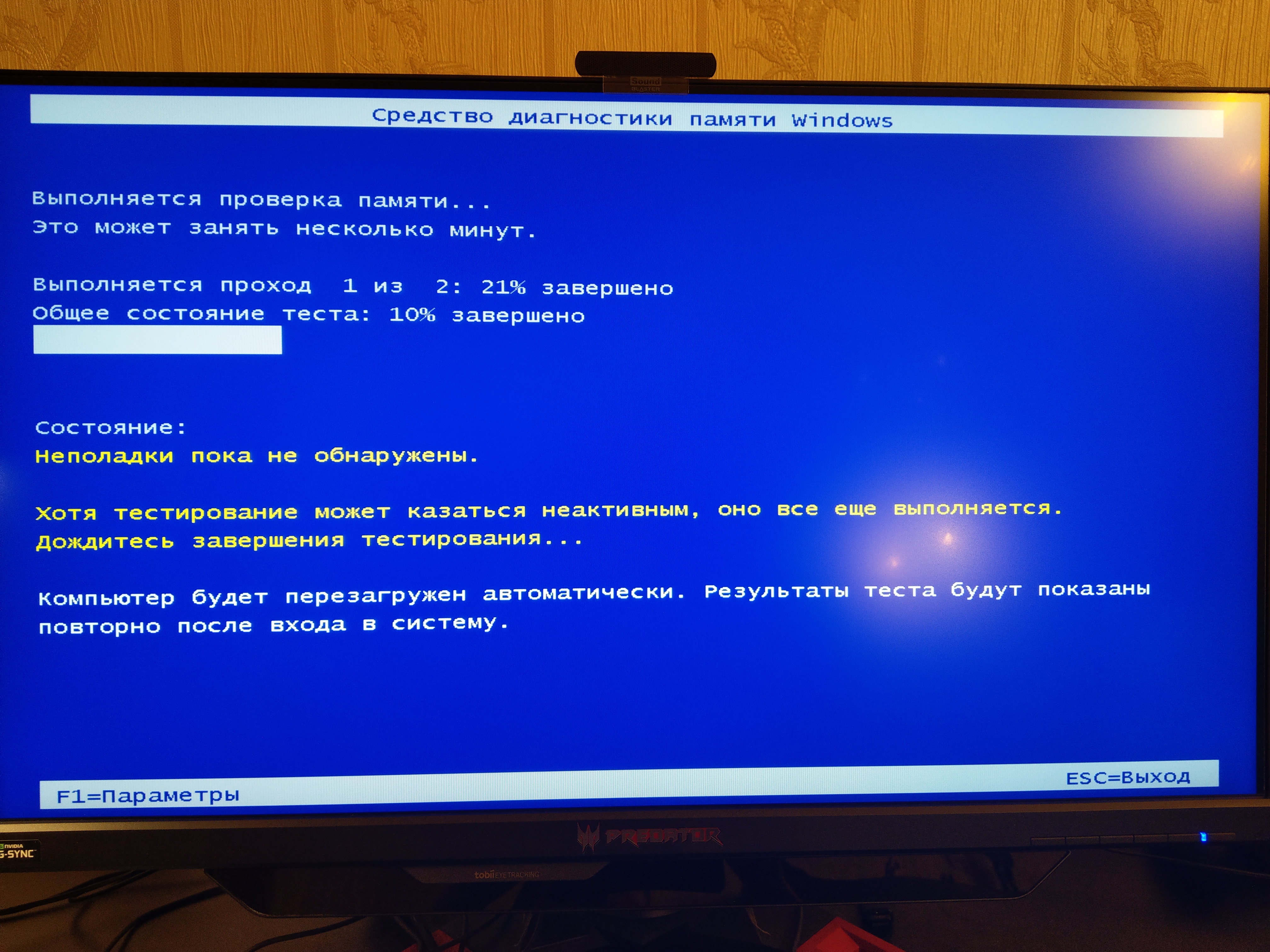 Момент процесса зависания,на нажатия f1 и esc не реагирует: