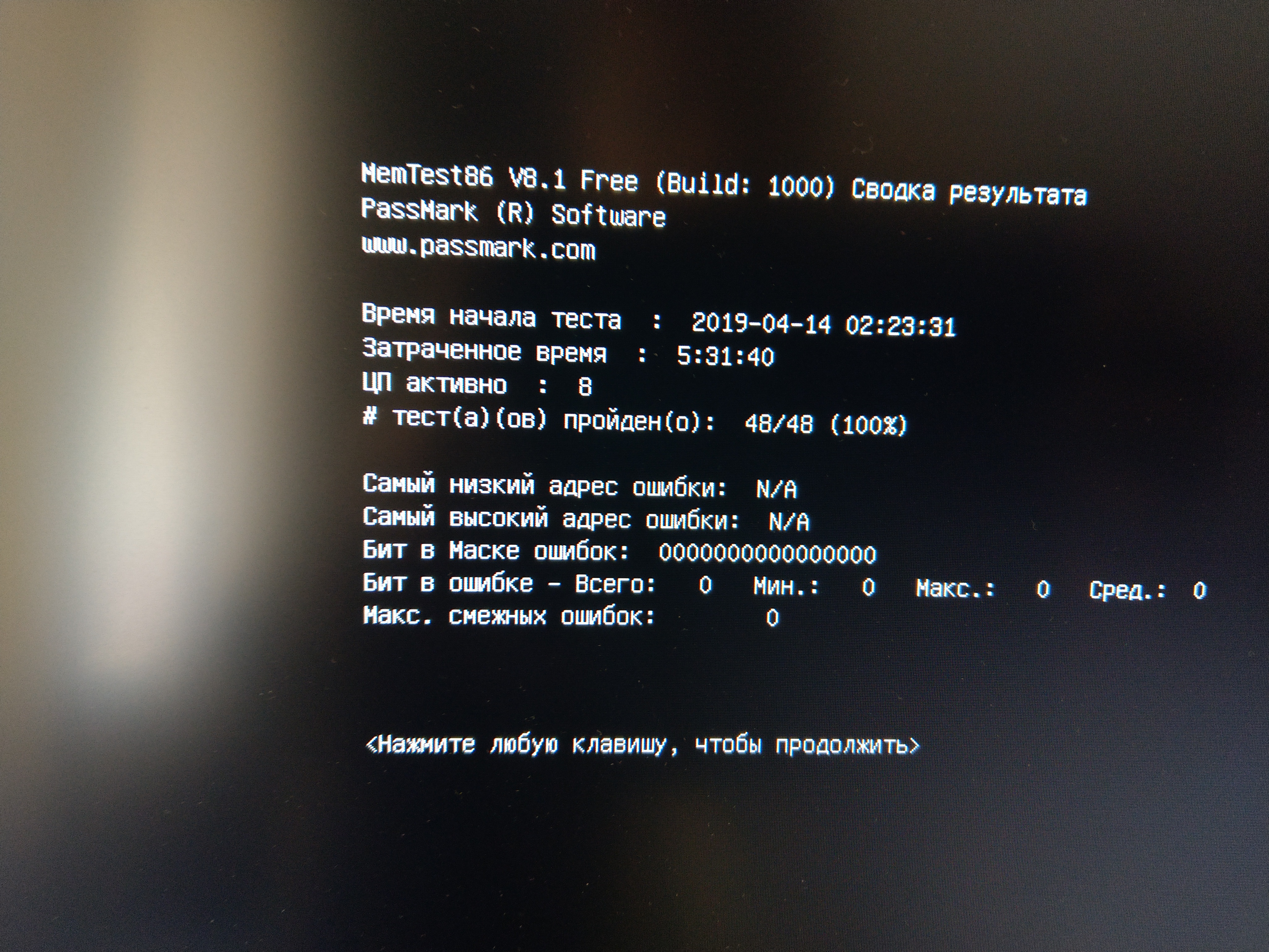 Victor91rus Vcore 1,24v. Перегрева нет. Зависает на 10% общего состояния теста и при 21% 1 го прохода. Может это из-за отключения кэша в тесте, х.з. Скрин теста с настройкой широкий набор тестов: