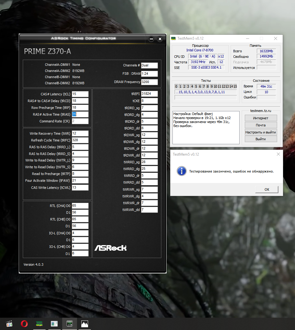 Ну память разогнал до 3200 с таймингами 18-18-18-36 Погонял мем тест, ошибок обнаружено не было. процессор сейчас без разгона. А теперь вопрос есть ли какая нить инструкция по разгону, до этого гнал АМД там по проще было )