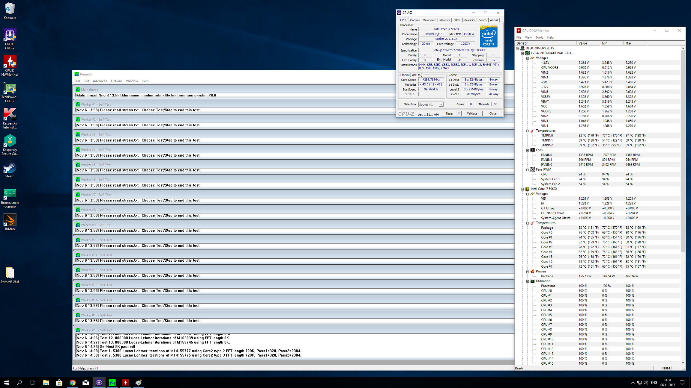 Всем доброго времени суток! подскажите по паре вопросов: 1. i7-6850K без разгона (т.е 3800Mhz): cpu-z показывает что материнка ставит 1.18-1.25В, а на сколько я прочитал тут то больше 1.2В лучше не ставить. получается экземпляр неудачный попался и разгон не светит? стабильно работает только на 4000 при установке 1.2В, и то это после нескольких часов стресс теста aida64. linx побоялся