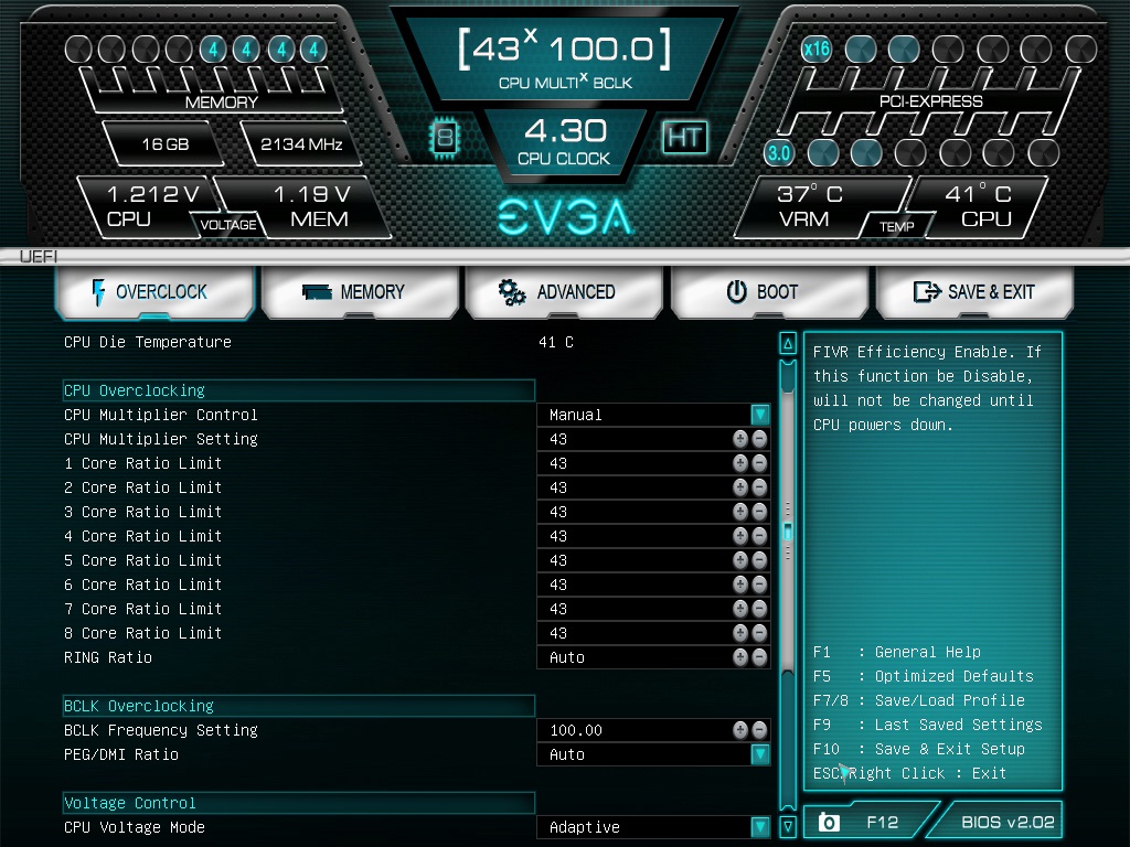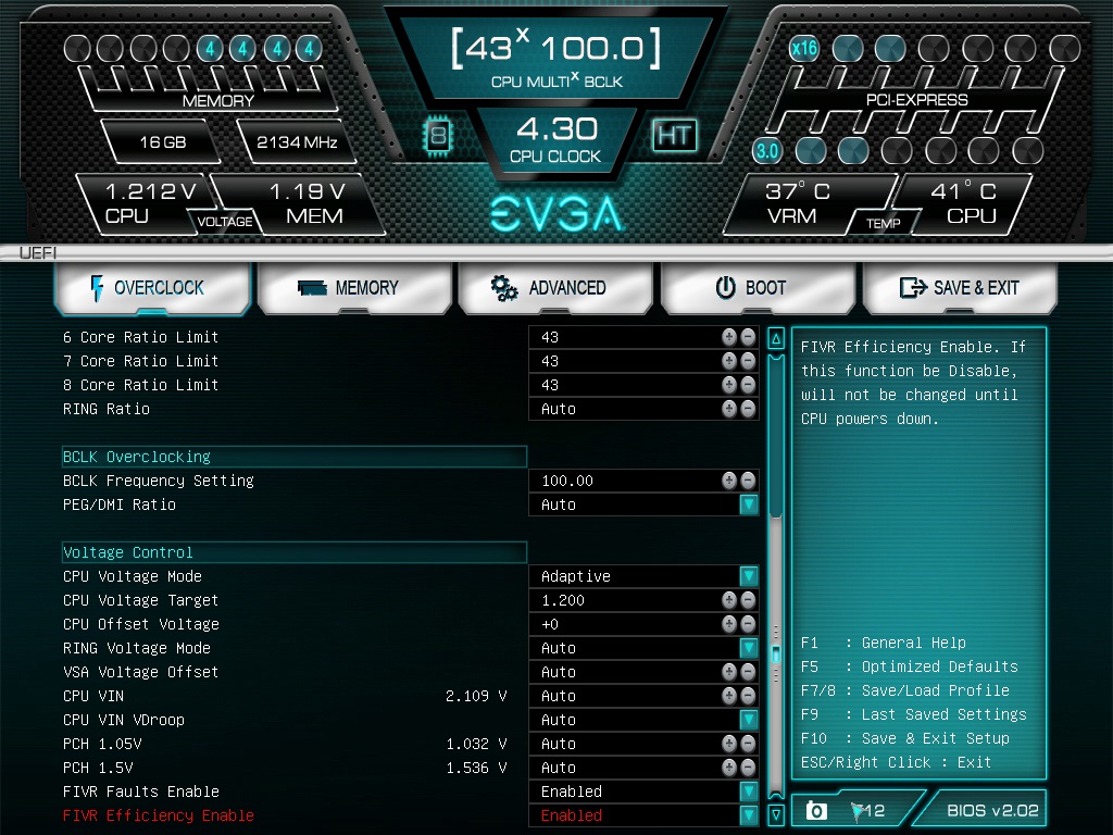 Всем привет! Приехал наконец ко мне 5960х. Сегодня разогнал на 4300 при 1.2В. Правда в реале вижу 4290Гц. Протестиловал 30 минут Prime95 без AVX вроде норм. Вобщем поюзаю время покажет на сколько стабильно. Вопрос такой. Материнка EVGA X99 Micro2. Не нашел там достаточное количество вольтажей что б обезопасить себя. В частности хотел ограничить fivr. Отрегулировал только core вольтаж. Скрин прилагаю. Буду рад советам, если что подправить.