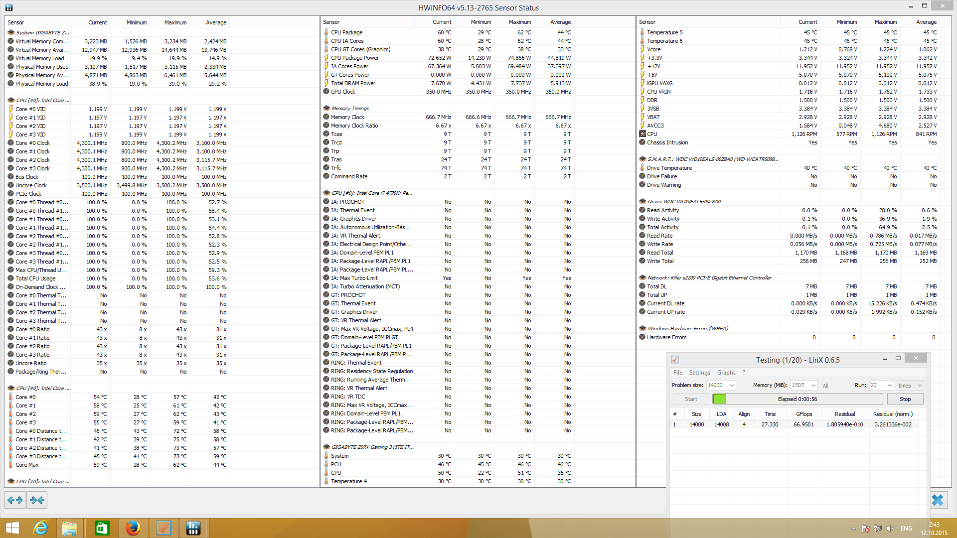 olegdjus А как могли потеряться 100гигафлопс? сейчас прошел ещё раз на 4300 1.2 вольт, 129 гигафплопс. На встроенном ядре думаю 3dmark вообще не заработает. Хз что с результатами система новая, может чего не установил...