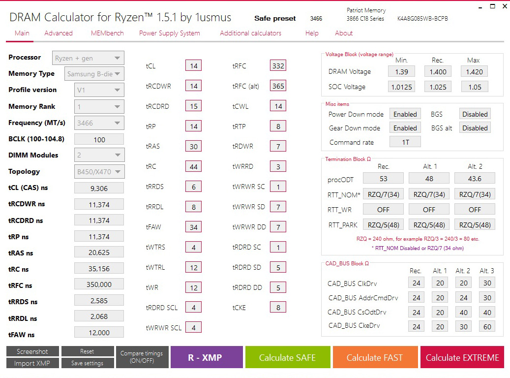 1.4v немноговато будет? В обзоре смотрел данные плашки на MSI B450 Gaming Pro Carbon 3466 МГц, работали на 12-14-14 28-Т1,правда при каком вольтяже неуказанно.