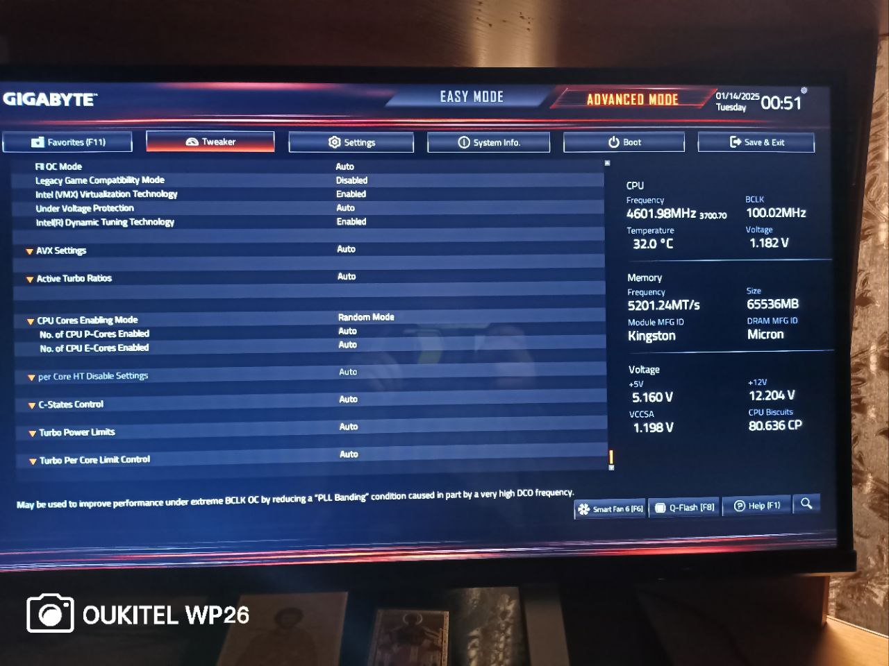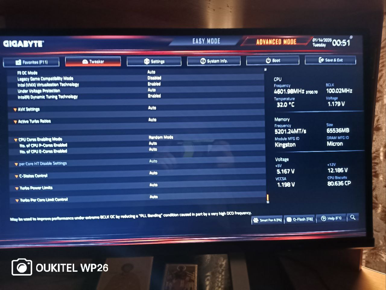 Тоже дрочился длительными тестами на 10000% стабильность, в куче прог. Часа 2-3 может крутить 7200-7400+, дальше шанс вылететь повышается. На томагавке 760 и 14700 + жирная память, которая изи бутается на 8000 и 1.4в нет стабильности выше 6800, хоть тресни. Есть очень большая вероятность, что надо сильный обдув уже, но вообще не хочу этим заморачиваться.