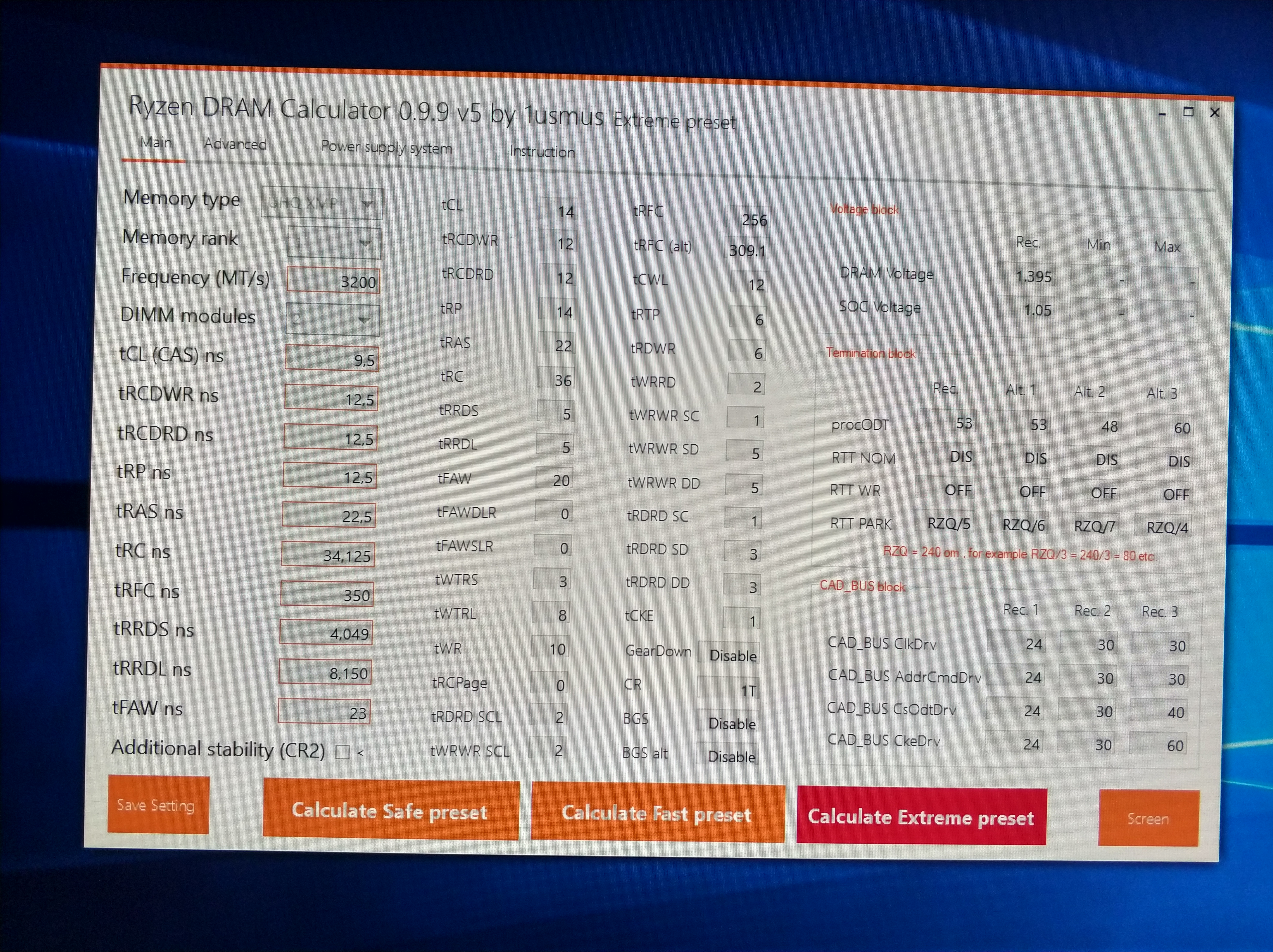 есть вопрос по новому калькулятору, пробовал ставить пресет экстрим на 3333, в итоге биос наглухо завис при перезагрузке, помогло только сброс биоса, ну думаю попробую 3200 тогда на экстрим, картина та же может калькулятор какой-либо параметр для моей памяти ставит не верно?