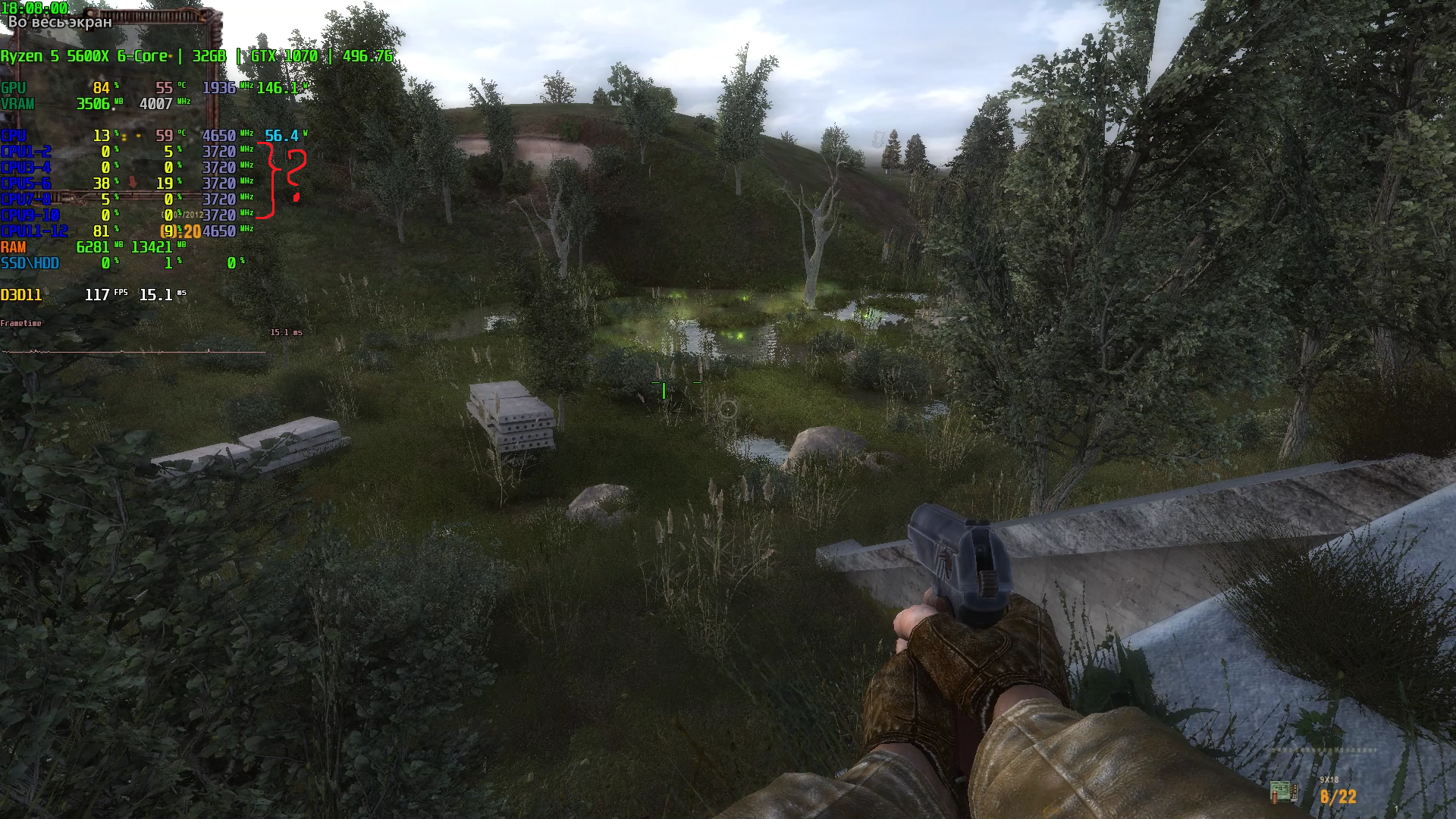 В начале стоит фиксированная частота 4.65ГГц, дальше я альт-табнулся и в ryzen master вернул в сток