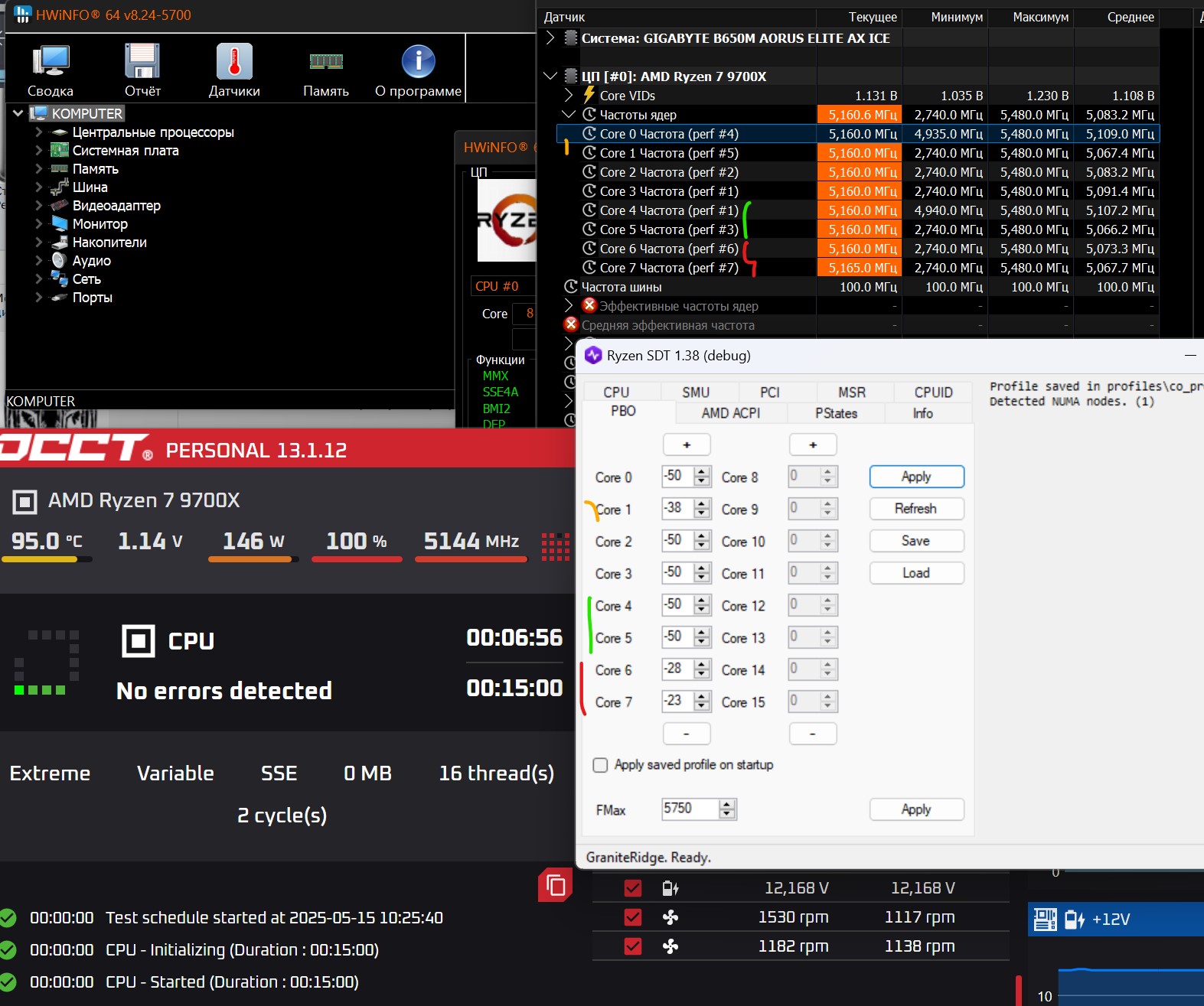 Например Aida64 CPU+FPU+Cash, а также на всякий OCCT (но какие настройки брать, Авто, SSE, AVX?) использую. Возможна ли курва +50 по некоторым ядрам у 9700х, а то ставлю и вроде ошибок нет... но пока тестировал не очень долго, порядка получаса в каждой из программ.