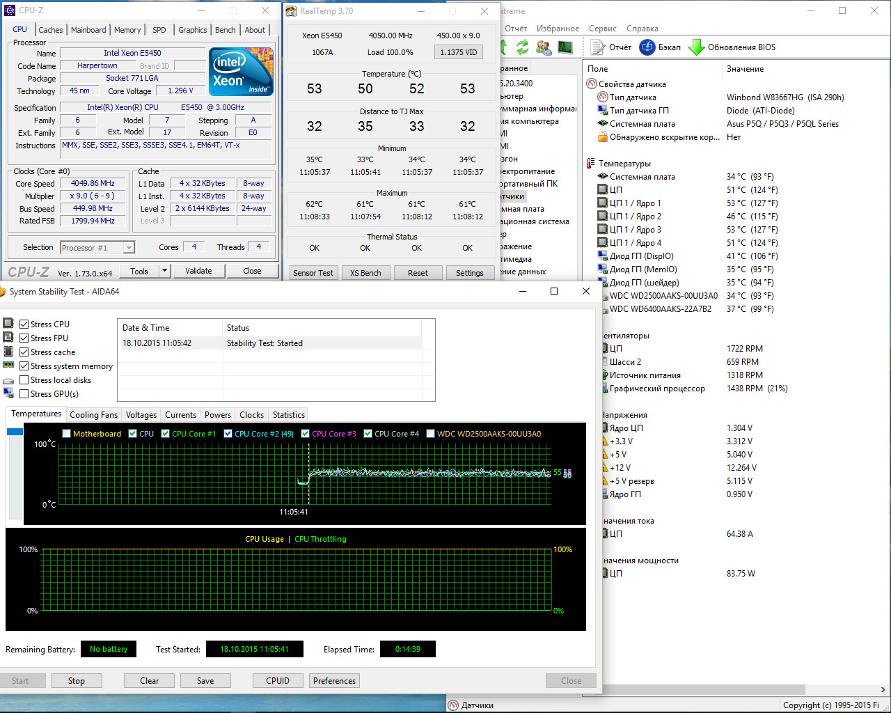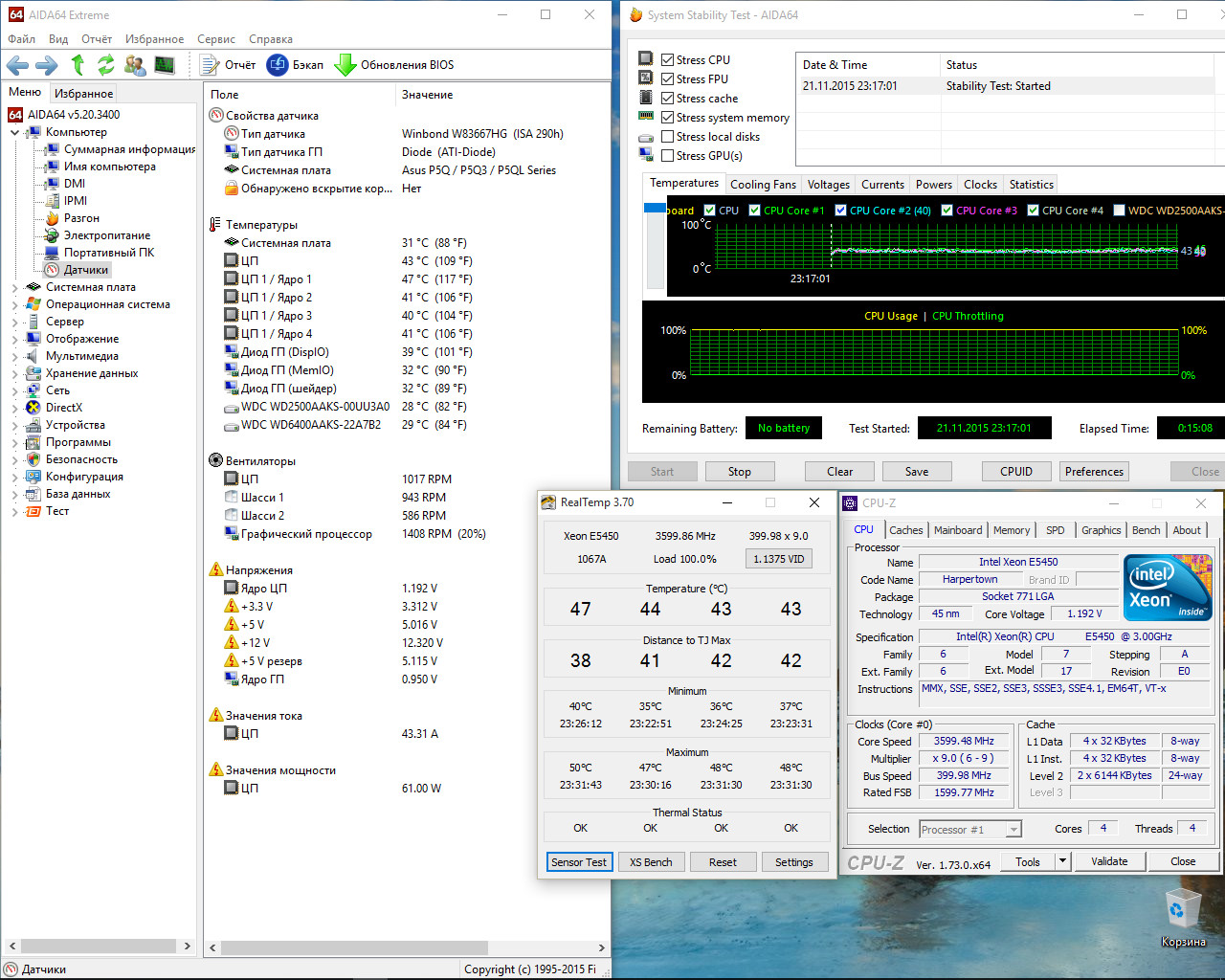 скинул разгон на 3.6Ггц, т.е. шина в 400Мхц, память в штатных 800Мхц, запустил Аиду .....