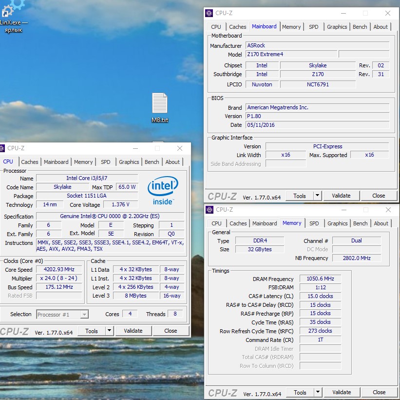 А что насчёт работы с памятью DDR3? Официально платформа Skylake работает с DDR4 и DDR3L. Но опытным путём установлено, что даже с планками DDR3 с рабочим напряжение 1.65В проблем не возникает при длительной эксплуатации. Есть наблюдения, что разгон на мат.платах с DDR3 затруднён из-за меньшего выбора множителей памяти.