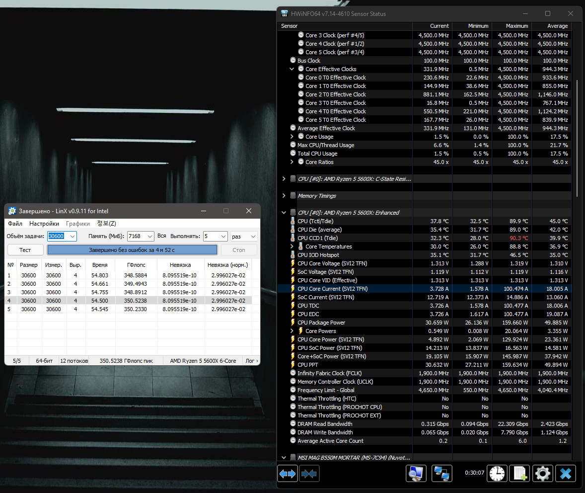 У меня 160w ppt на воздухе давало 90С на 5600Х. С СЖО получается практически так же...пока что...при гарантированно одинаковой температуре воздуха я пока не сравнивал, руки не дошли. Если в комнате прохладно то было около 80. Если очень тепло, то те же 90.