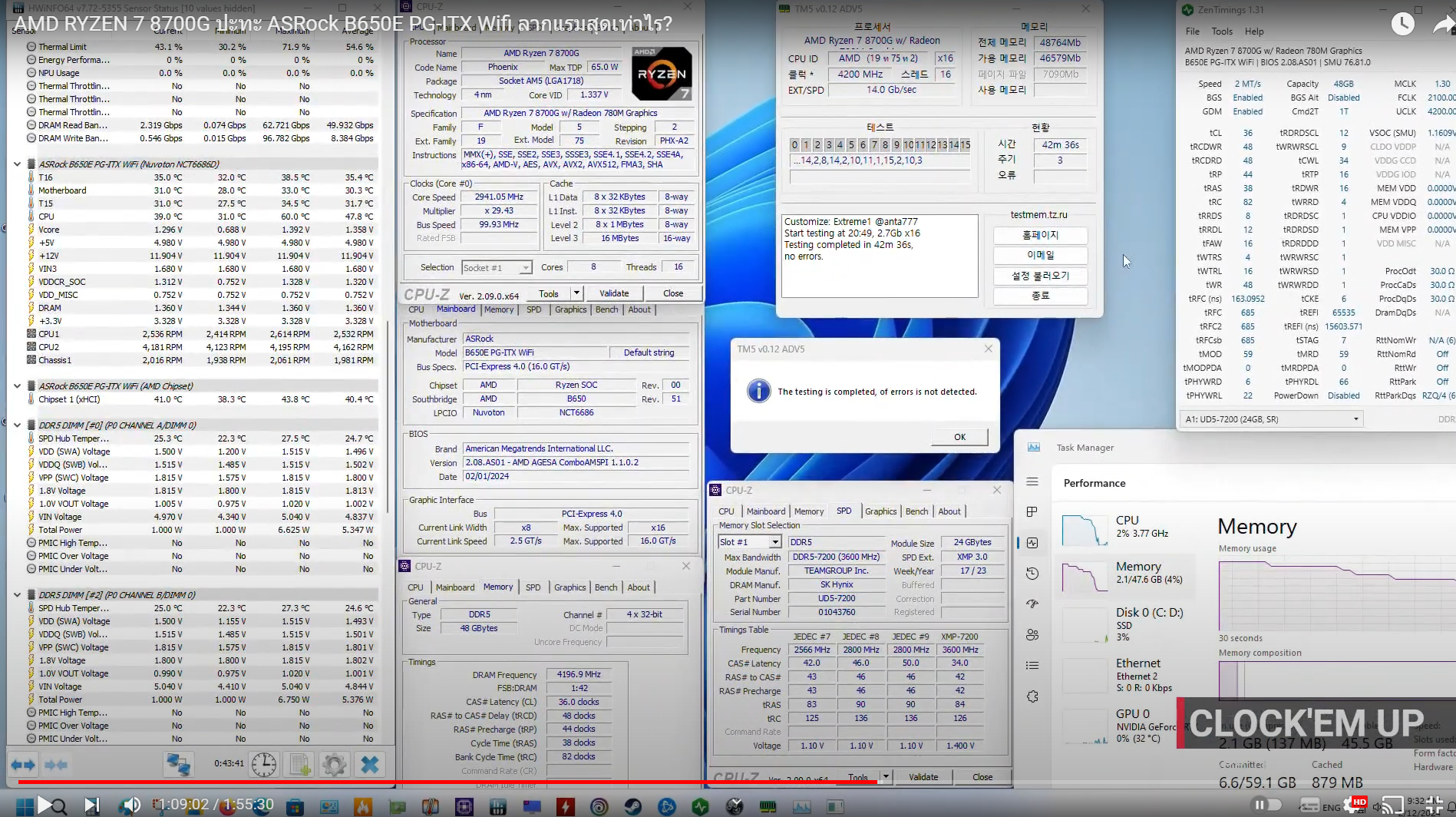 :: Hardware Setup :: - CPU : AMD Ryzen 7 8700G 8C/16T - MOBO : ASRock B650E PG-ITX Wifi BIOS Ver 2.08.AS01 [Beta] - RAM : TC T-CREATE DDR5-7200 CL34 48GB-KIT (New Hynix M-DIE) - VGA : AMD RADEON RX 7900 XT 20GB GDDR6 Ref. Card - M.2 : Patriot P300 PCIe3.0 x4 NVMe SSD 2TB (OS + Game Drive) - PSU : TT ToughPower GF A3 SNOW 1050Watt 80PLUS GOLD - OS : Windows 11 Pro 23H2 Last Update