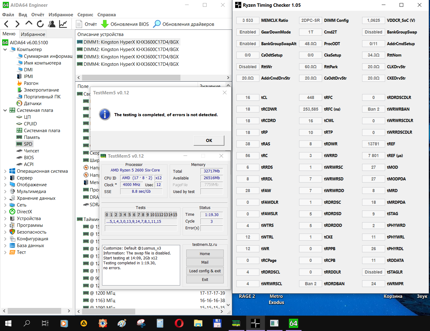 Это не редкие)) Можешь попробовать rttwr rzq\3. У меня тоже 4 планки память и материнская плата самая лучше из всех "ASUS STRIX B350-F GAMING" Если тест пройдет с первого раза не обольщайся, на холодную после отключения от сети может засыпать ошибками.Максимум чего пока добился 2 минуты без ошибок)