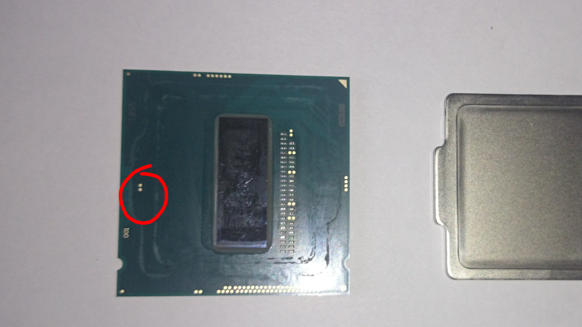 Здравствуйте. Есть вопрос по 4790k после вскрытия увидел под теплораспределительной крышкой два контакта В моем случае, до очистки герметика они были почти замазаны, но не совсем у других на фото видел что они вообще не видны. При установке крышки без герметика или только на углы они гарантированно замкнутся. Не могут они быть контактной группой на крышку с анализом ее наличия или отсутствия, счас установил на герметик вроде они не замыкаются. Но интересно что это? Кто из гуру знает.