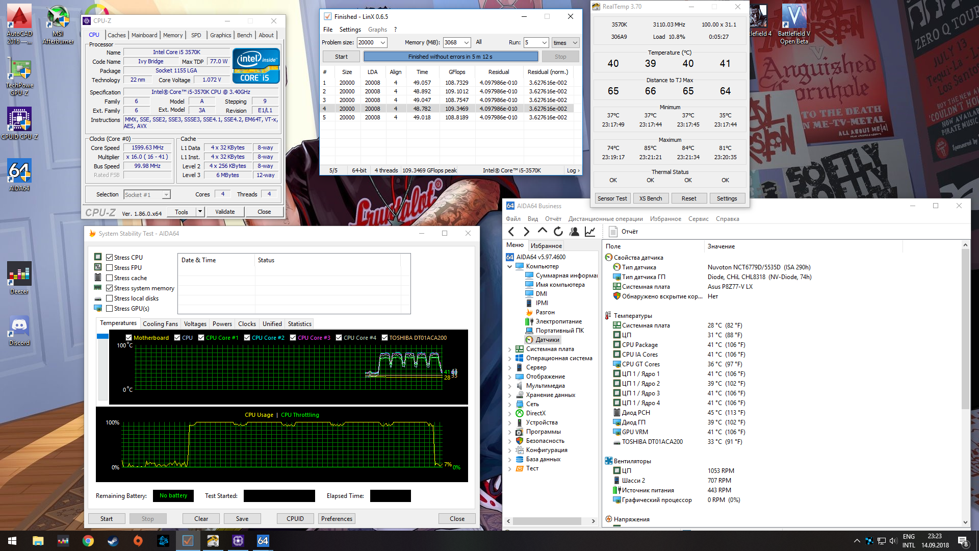 Очень нужен совет по разгону. Собственно лет 5-6 назад собирал себе комп, в разгоне особо не понимал*( да и в проца тогда хватало) - поднял множитель до 41 на авто напряжении питания. Сейчас сменил видеокарту и стал замечать, что проц постоянно на 100 загружен, т.е. появилось желание выжать с него по максимуму, так как на апгрейд денег нет. Термопасту тоже не менял лет 5-6.. Вчера сделал тест линкса, что бы увидеть температуры.. Есть ли смысл гнать с такими результатами теста? Или же это и так оч. высокая температура и стоит сделать скальп+ сменить термопасту перед разгоном? Тип ЦП i5-3570K, 4100 MHz (41 x 100) Имя модуля Samsung M378B5173CB0-CK0 х2 Системная плата Asus P8Z77-V LX
