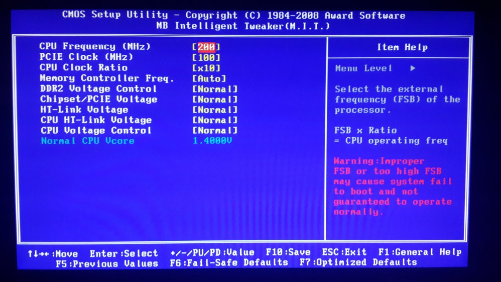 CPU/HT 305 CPU Ratio 15 CPU/NB Freq 1220 CPU Over Voltage 1.6 VDDNB Over Voltage 1.325 Loadline Calibration 51.6% HT Link 915 HT Over Voltage 1.3 Memory Clock Speed 400 Chipset Over Voltage 1.35