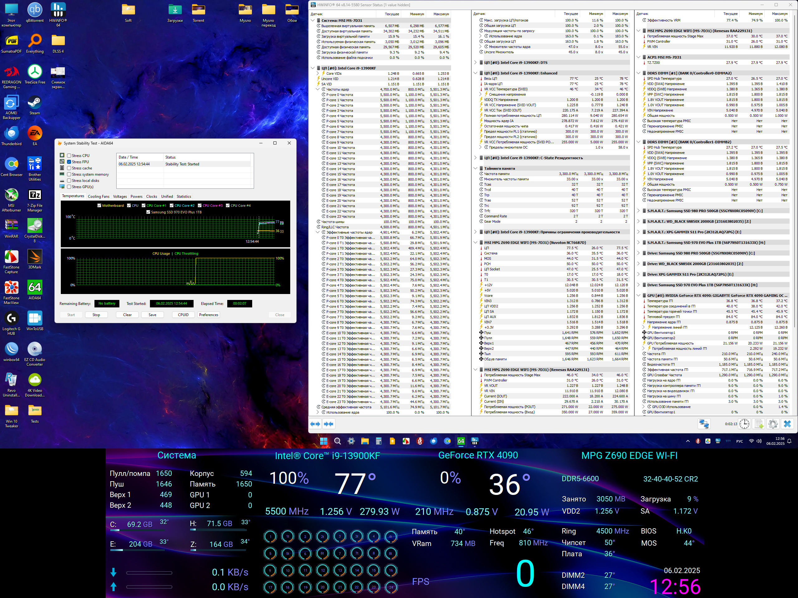 А так и есть. Если 250 ватт с 13900К реально отвести и на воздухе, то с 13600К это даже на водянке будет тяжело. Дело не только в напряжении, оно может быть и одинаковым. Степень отбраковки, меньшая реальная площадь отведения тепла с i5, все эти факторы так же влияют на результат.
