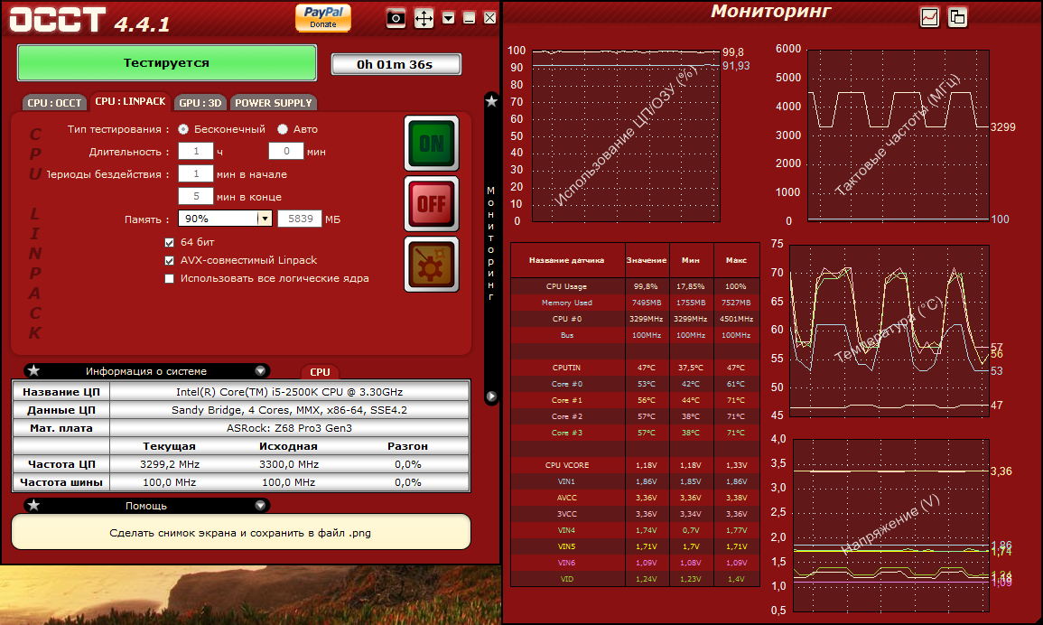 Ребята! Здравствуйте! Помогите пожалуйста. При разгоне процессора i5 2500k до 4.5, в линпаке наблюдаю странную зависимость температуры и частоты процессора. Thermal Throttling в Биосе отключал, офсет выставил +50, турбо вольтаж +0.016. Мать Asrock Z68 Pro 3 Gen 3 P2.30B