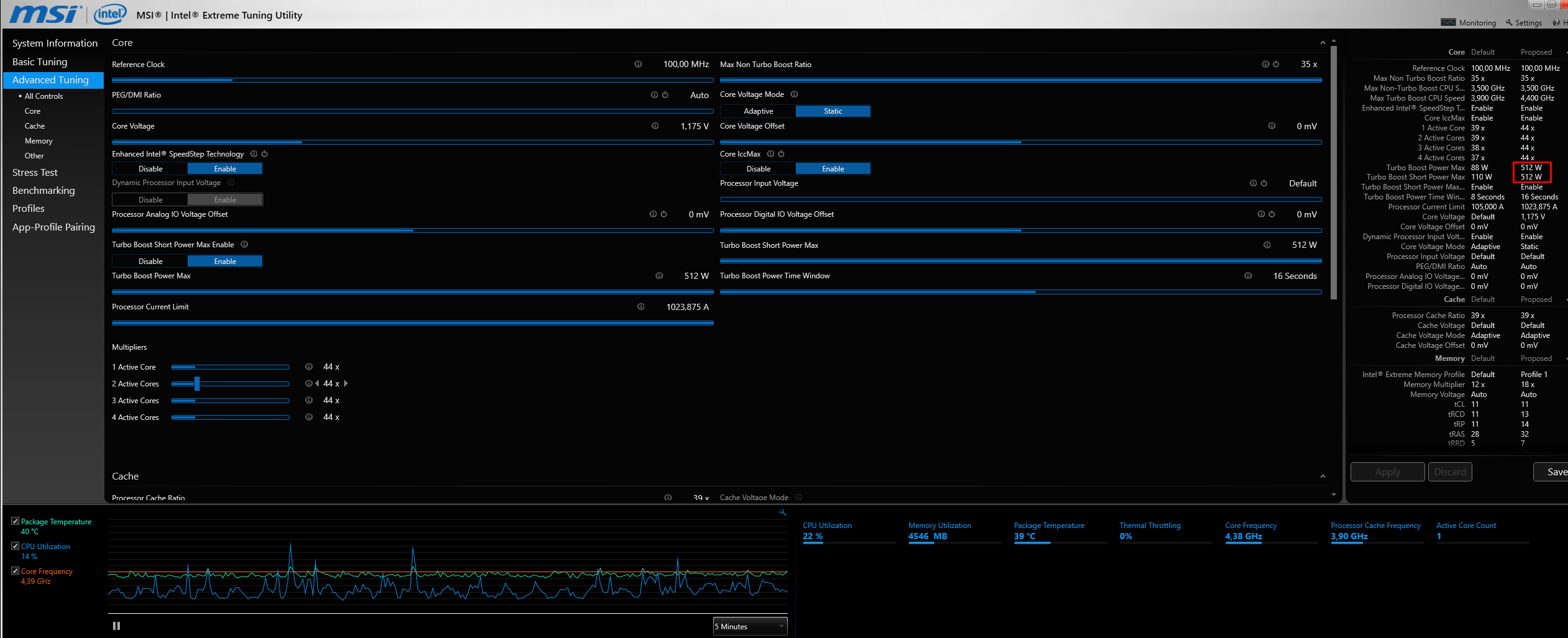 TheRock666 наверное у вас частота кэша не сбрасывается, это ещё -5w даёт Для этого в биосе вручную надо поставить мин множитель х8 и максимальный 40х, иначе будет всегда молотить на 40х HWinfo64 показывает: