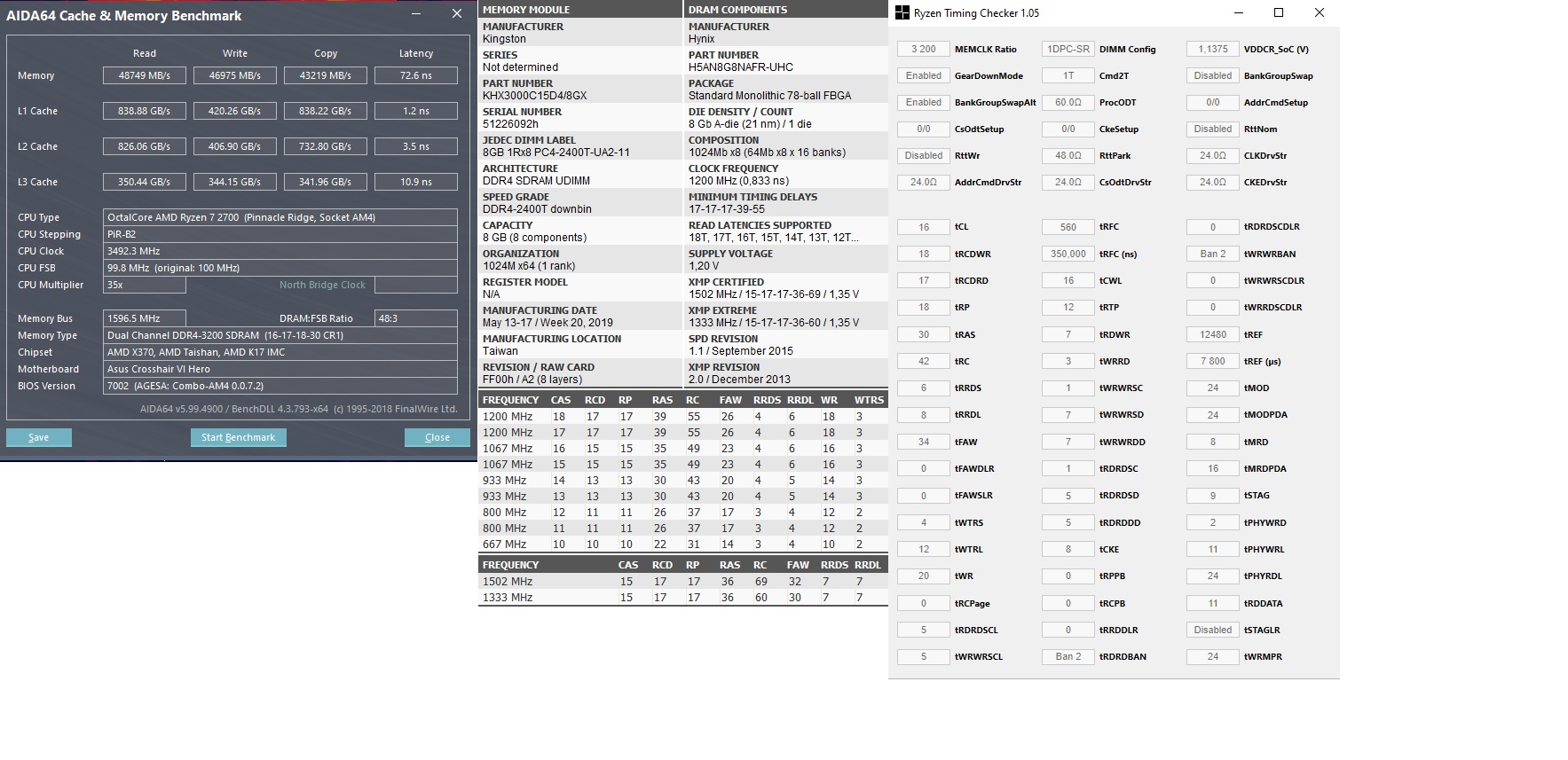 - Гонится ли лучше ОЗУ на ZEN+? - Нет, контроллер памяти идентичен прошлому поколению, даже имеет идентичные прошивки. Единственно улучшение - более низкая потребность в SOC voltage. Статистика разгона памяти : 3400 МГц - 12,5% образцов , 3466 МГц - 25,0% образцов ,3533 МГц - 62,5% образцов при условии использования памяти на чипах Samsung b-die.