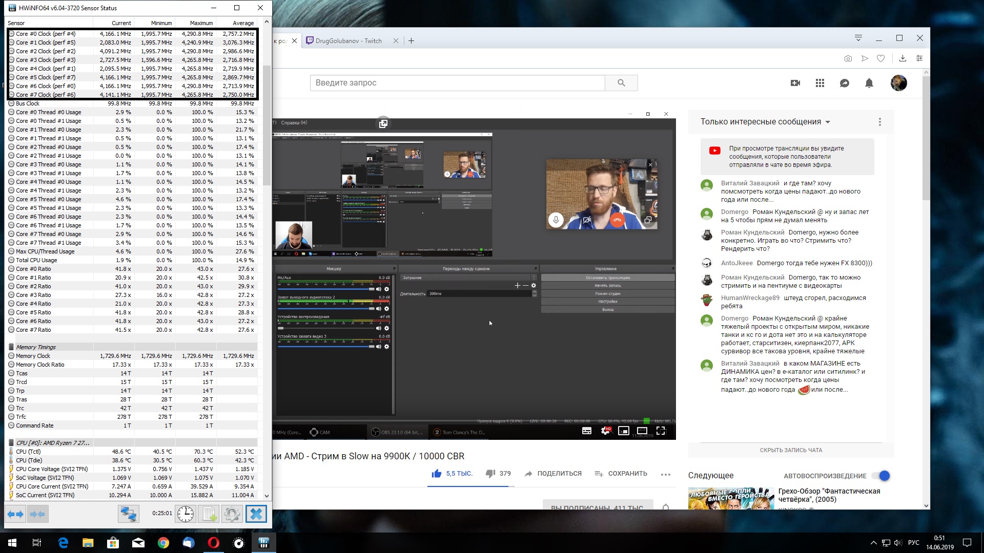 Хех, ну что же немного лучше потестировал все. В результате заметил следующее. После обновления 1903 получил какое то странное поведение частот. Они постоянно даже при просмотре браузера стали буститься до 4ГГц+ (при этом еще и множитель колбасит), думал может драйвера на чипсет слетели полез на сайт асуса, там версия от апреля, ничего нового не предлагается все оборудование уже установлено либо более новое либо предлагают установить повторно. Вот думаю, что же сие может быть. Буст одного ядра упал до 4340 ни разу не бустануло. Смотрю видео на youtube грузится 4-8 ядер ... жесть прироста нигде не увидел, ну ок в Мембенче калькулятора тест прошел на 2 сек быстрее стало не 210, а 208 сек. Вот даже сейчас пишу этот пост, а частоты себя ведут как взбесившиеся. До обновления все было стабильно 2195 при отсутствии нагрузки или браузинге/просмотре видео. Может какие службы ОС новые его дергают? Как проверить?