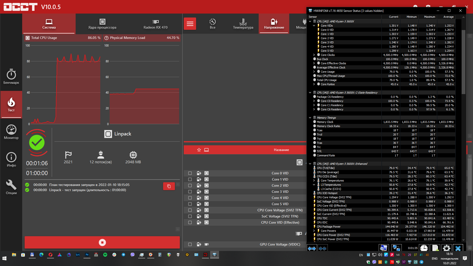 13:42:47: Test 2 started! 13:42:47: 5T-6T DEBUG INFO: Start VID: 1325mV Start CCD#1 FREQ: 4400MHz Vdroop: 0.45% CO reserve: -13 13:43:04: Cinebench stopped! -= PROFILE: 5T-6T =- VID: 1325mV CCD#1 FREQUENCY AVX1: 4550MHz FMA3: 4450MHz 13:43:04: Test 2 finished!