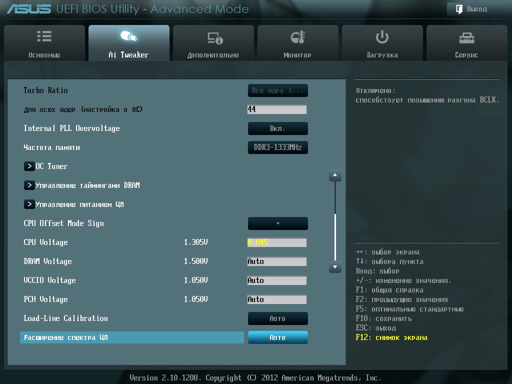 Ограничение мощности отключить надо, хотя не уверен что это как-то повлияет на ситуацию Напряжение к процессору прибавлять надо что ли? ,045 это чего такое? +1,305? Лоад лайн калибрейшн енеблид надо поставить или выбрать левелы. Попробуй по шине немного разогнать.
