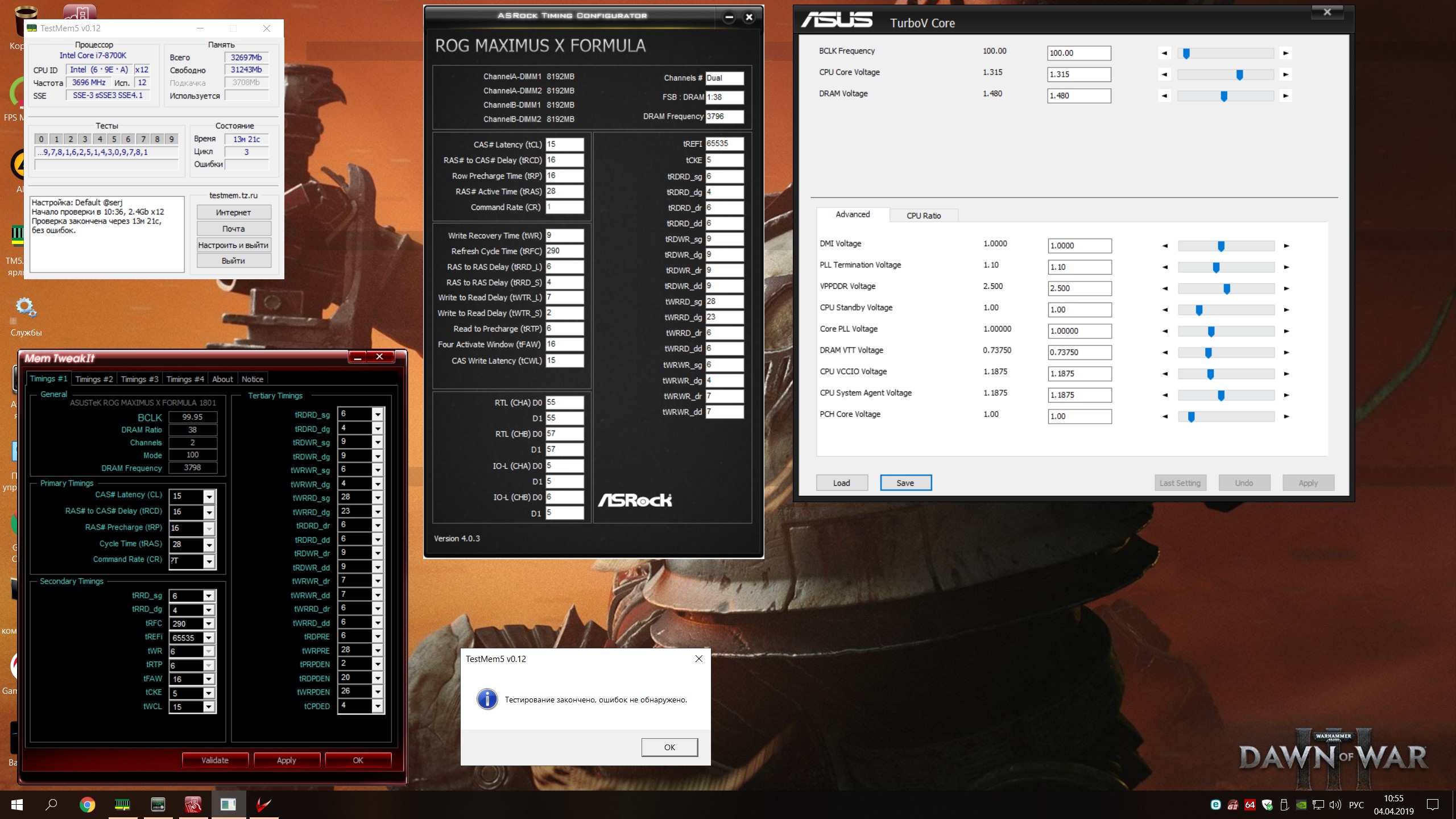 Еще по теме - сейчас вот на 5.0 AVX0 4000 RAM на герое не получается пройти линкс больше 10 проходов, вот так... Ни на какм напряжении, ни 1,4 ни 1,42в И кроме того на 5ГГц у меня на температурах более 105 градусов возникают ошибки кеша, которые либо офсетом AVX лечить либо понижением частоты до 4700-4800МГц процессора. Частота кеша практически никак на эти ошибки не влияет, что 4000, что 4600мГц... А то можно напроходлить линкс, а у тебя кеши отваливаются Самое смешное, что в момент отвала кеша линкс выстреливает максимальную производелльность, т.е. если все время было 485-490Гфлопс, то может выстрелить 500-510, но эти ошибки никто не смотрит, к сожалению ))) Вот как-то так прошло сейчас без ошибок. Скорее всего для разогнанной памяти и проца на 5ГГц AVX0 возможен ну у очень отборных камней, либо только с AVX отличным от 0.