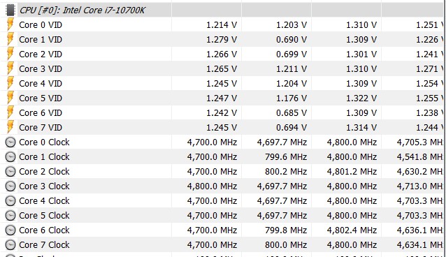 Это снова я со своим 10700k. Довольно много времени потратила на тестирование, и судя по всему +0.060 вольт в адаптиве с llc medium оказались стабильными для моего экземпляра. Провела в fallout 76 почти 14 часов возле города, где лучше всего ловились internal parity error, и не поймала ни одной whea. Надеюсь, что не просто совпадение, т.к. с повышением вольтажа ошибки появлялись все реже и реже. В итоге имею +0.115 относительно стабильного в Prime95 и LinX вольтажа на 4700 мгц (и +0,035 относительно стабильного в прайме вольтажа для 4900 мгц, вот ведь бред )