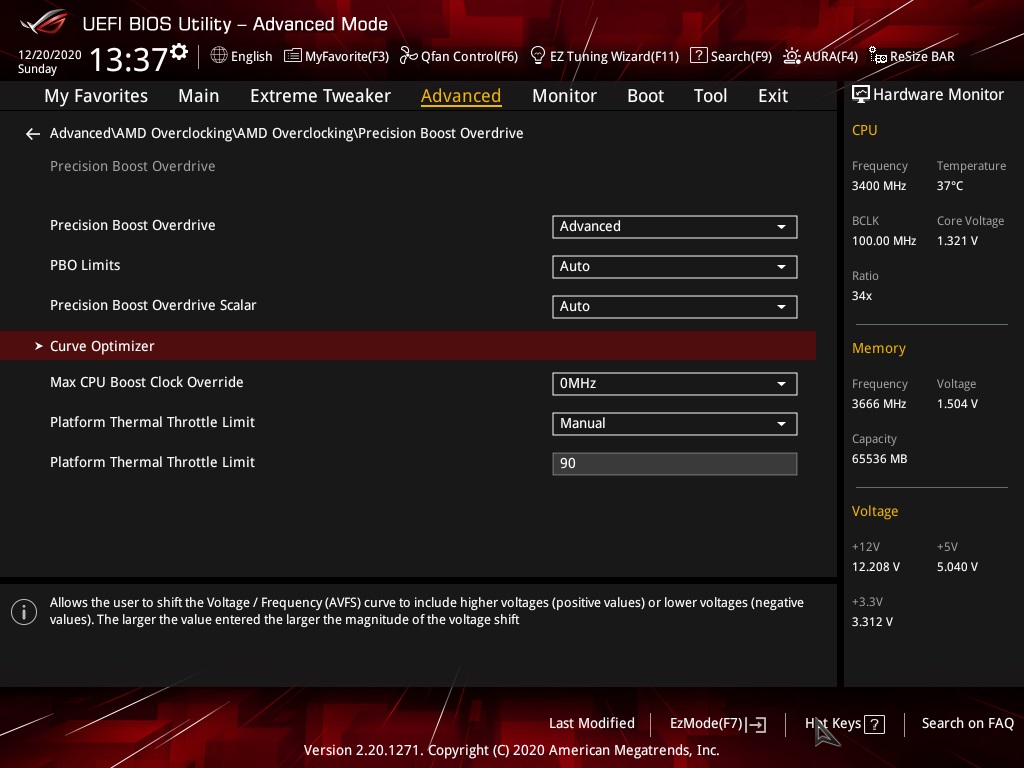 Лично я выставил сразу лимиты по максимуму что может VRM материнки и сколько может переварить охлаждение. Precision Boost Overdrive Scalar чем больше значение, тем позже и менее агрессивно процессор сбрасывает частоты после того как пропала нагрузка. Выставил на максимум. Что касается Load-Line Calibration то для всего кроме VCore выставляю в самое агрессивные значения, хотя и для VCore тоже. Precision Boost берёт во внимание показания именно мониторинга, а не запрашиваемое значение. Мониторинг материнской платы читается Precision Boost`ом через такой протокол как SVI2 TFN. Технология заключается в следующем: 1)выставляем Желаемый VCore Offset, если выставляем его в сторону увеличения, то малопоточная производительность будет выше, если в сторону уменьшения то многопоточная производительность будет выше. Под каждую настройку VCore Offset надо подправлять значения Curve Optimizer, 2)сначала для всех ядер уменьшаем Curve Optimizer, 3)запускаем скрипт, упомянутый выше, повторяем шаг номер 2, пока ни начнёт вываливаться ошибка на одном или нескольких ядрах и откатываемся на один шаг 4)запускаем после этого Cinebench R20, с большой вероятностью система просто перезагрузится, это по большей части лечится добавлением CPU PLL напряжения с 1,8V, но не превышая 1,9V, хотя от чрезмерного напряжения PLL может начаться обратный эффект и стабильность пропадёт, 5)далее начинаем настраивать Curve Optimizer для каждого ядра отдельно и проверяем стабильность как в шагах 3-4.