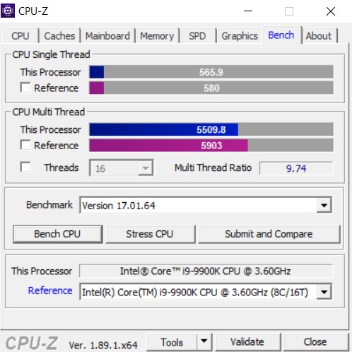 -=GURU**of**3D=- Проблема в самом CPUZ возможно, попробуйте сначала пройти бенч версии 19, тот что с avx beta, а потом уже обычный 17 версии, у меня после таких манипуляций обычный тест начинает нормально показывать, а до этого -200 баллов где-то. И еще версия самой программы влияет на результат, в 1.87 чуть больше получается, при том что результат референсов не меняют. В общем CPUZ такое себе мерило в долгосрочной перспективе.