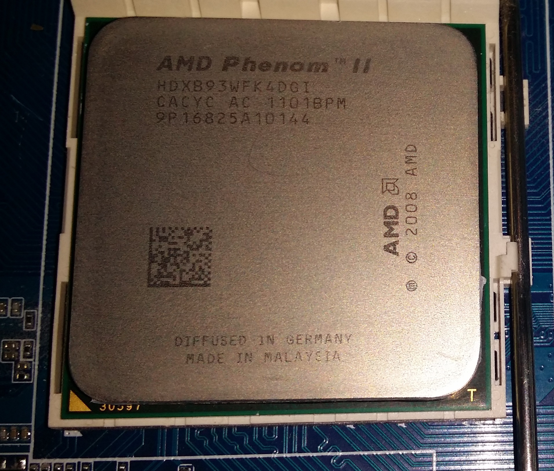 Сегодня в ПК нашел довольно редкий процессор, думая, что меня хотят обмануть, втюхивая разблокированный х3. Но не тут-то было: процессор оказался AMD Phenom II X4 B93 с маркировкой HDXB93WFK4DGI