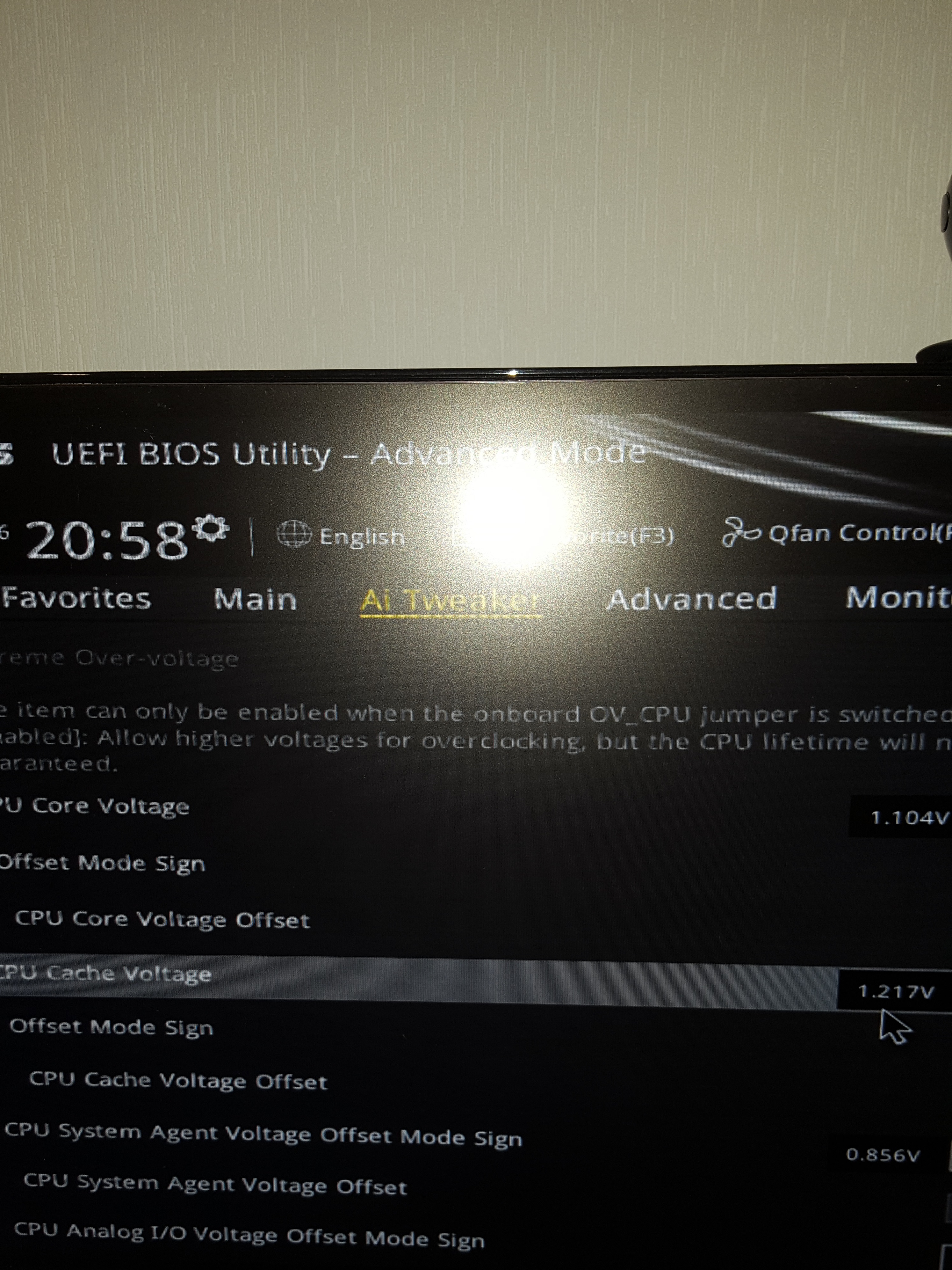 Вот такая байда с cache voltage , это у меня на авто , если руками то 1,176core и ,1,192cache стабильно ps Раньше было 1,176-1,176 сейчас стабильности нет с таким cache voltage