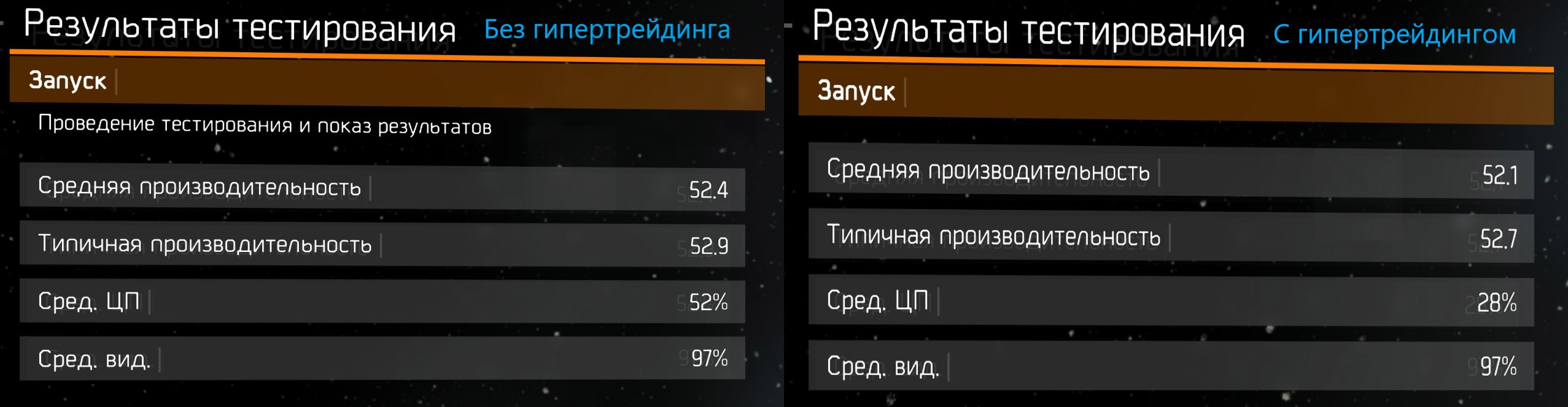 фпс особо не изменился, но вот загрузка проца без хт иногда до 90% прыгала