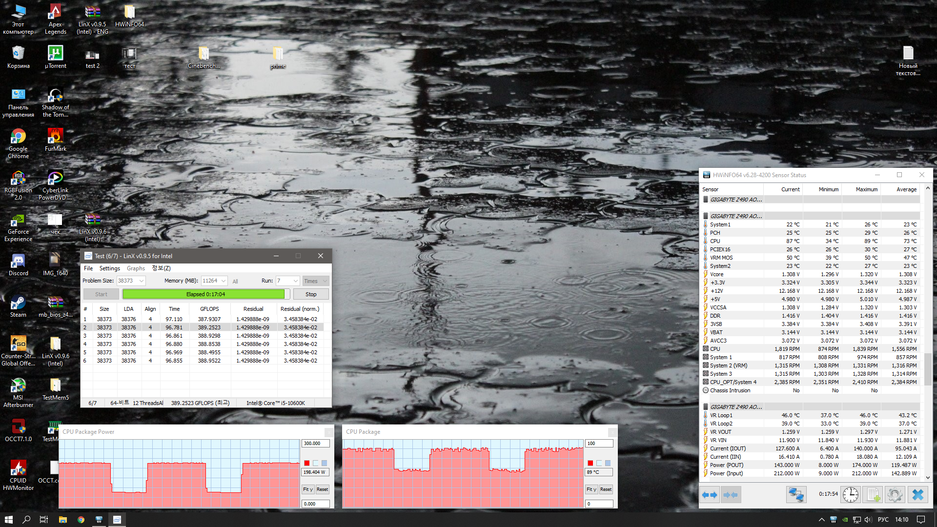 Всем привет, немного замучался с разгоном проца + память, проц i5 10600k в разгоне 4.8 ринг 4.5 1.3v, память Crucial Ballistix BL2K8G30C15U4B в разгоне до 4000 DDR 1.42v io 1.25v sa 1.3v при стресс тесте Linx проходит 18 минут, на след день включаю и вылетаю на первом прогоне, начинаю повышать io 1.28 sa 1.32 опять прохожу линкс, на след день опять вылет )) в чем может быть проблема? кп барахлит?