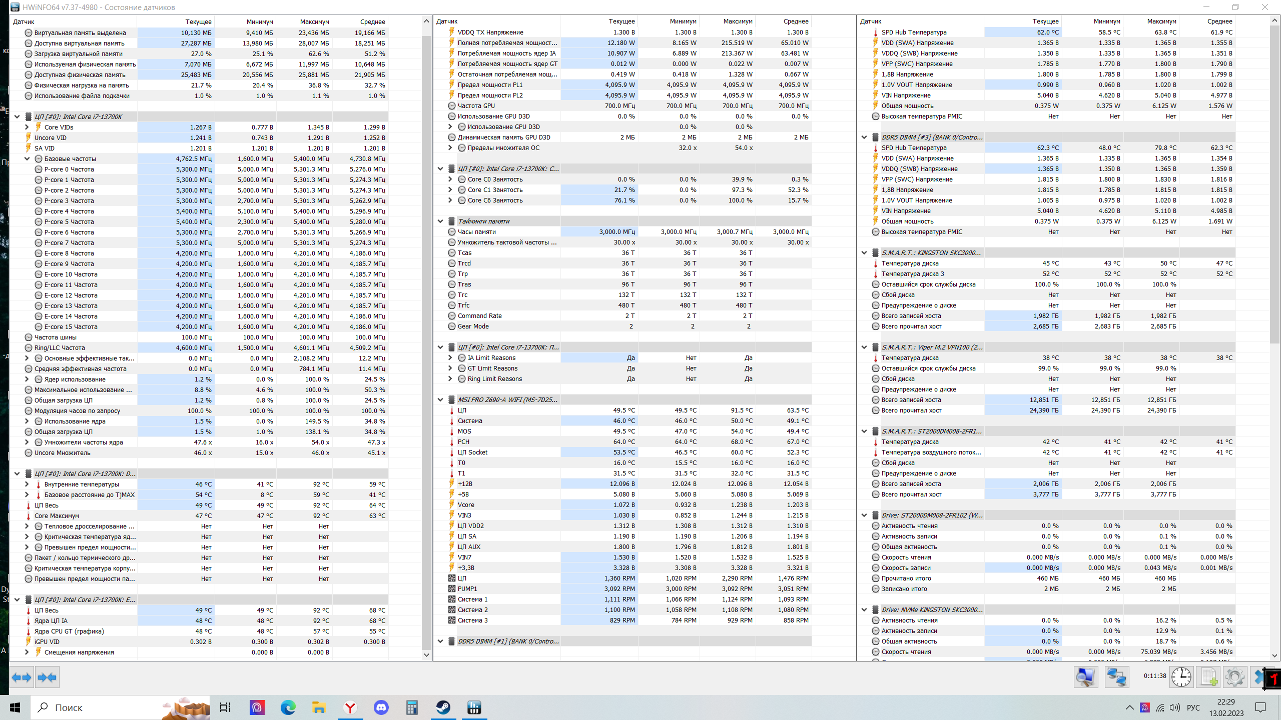 Имеем проц i9 13900 kf Мать asus tuf gaming b660m-plus wifi d4 Все настройки в матери заводские, за исключением xmp профиля.