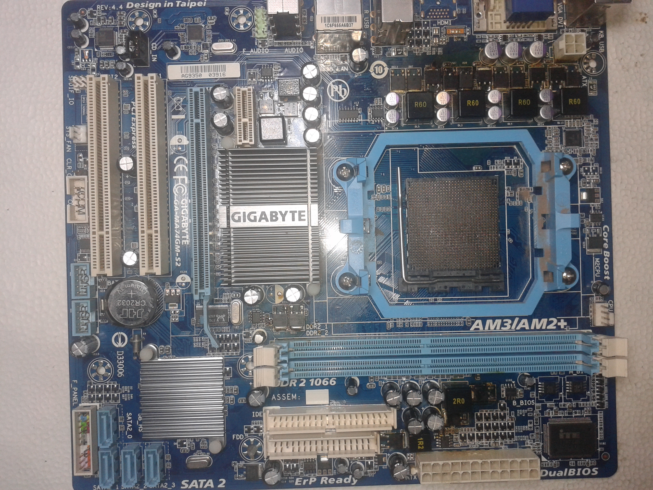 Старая плата "Gigabyte": два раза горел вход питания (я новый впаял), и в последний раз резистор на питание ОЗУ, резисторы 2,3,6,7,8,9 питания процессора вылетали в разных позициях. Последняя пайка запахла пластмассой и дымом из системного блока. После этого купил новую плату, но и старую решил напоследок "сделать". Но я скажу другое: "ОНА РАБОТАЕТ!!!". На нагрузку не тестировал, боялся дом сгорит, а в Word'е и в интернете летает...