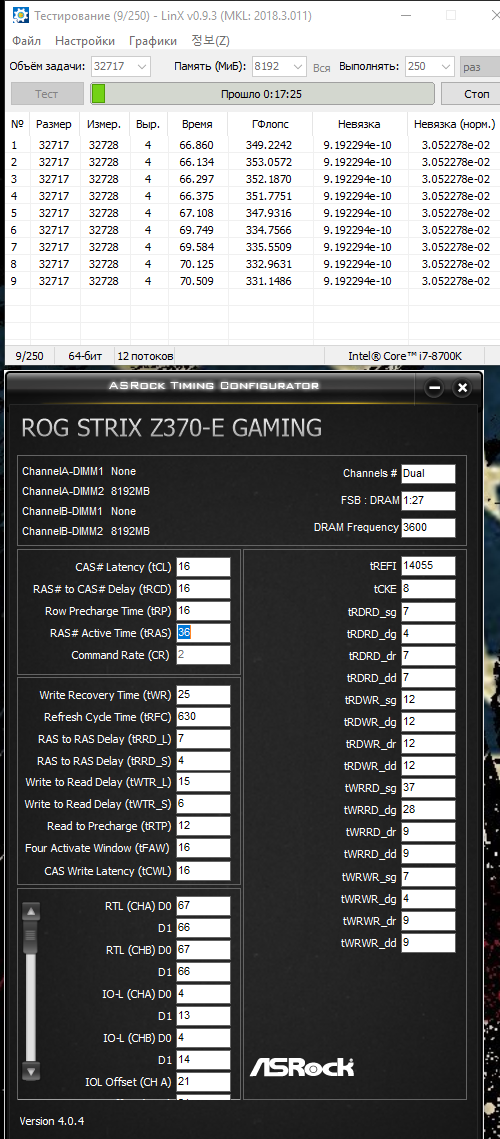 Extazik Ну для начало измените тайминги tRRD_L 4-5-7(для начала можно 7 поставить) tRRD_s 4 tFAW 16 Прогоните Linx и отпишите по результату. И еще бы скрин AsrockTimingConfigurator