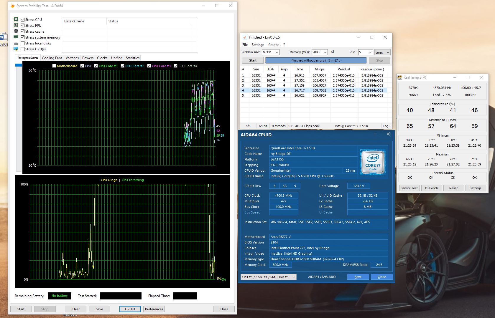 Я сделал скальп когда увидел 105 градусов ) Правда по LinX, в аиде если обычный тест CPU небольшая температура, а вот если FPU только галочку оставить - уйдёт в зашкал.