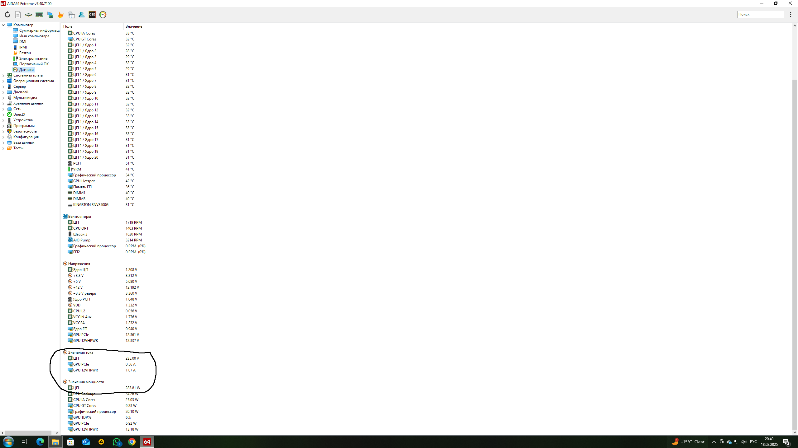 Подскажите кто сталкивался со скачками потребления, в мониторинге Аиды (на скрине выделил) Z790 Apex Encore + 14700K, в графе значения мощности - ЦП херачит волнами потребление в простое под 300W, пк в простое ничего не делаешь, а в этом пункте 20-60-150-230-280-300-40-60w и так постоянно. В биосе ограничение на 253W стоит. А ЦПУ пакет нормально отображает потребление. Мониторинг аиды тупит? На z690 gigabyte этого пункта вообще в аиде нету. Вопрос куда копать)
