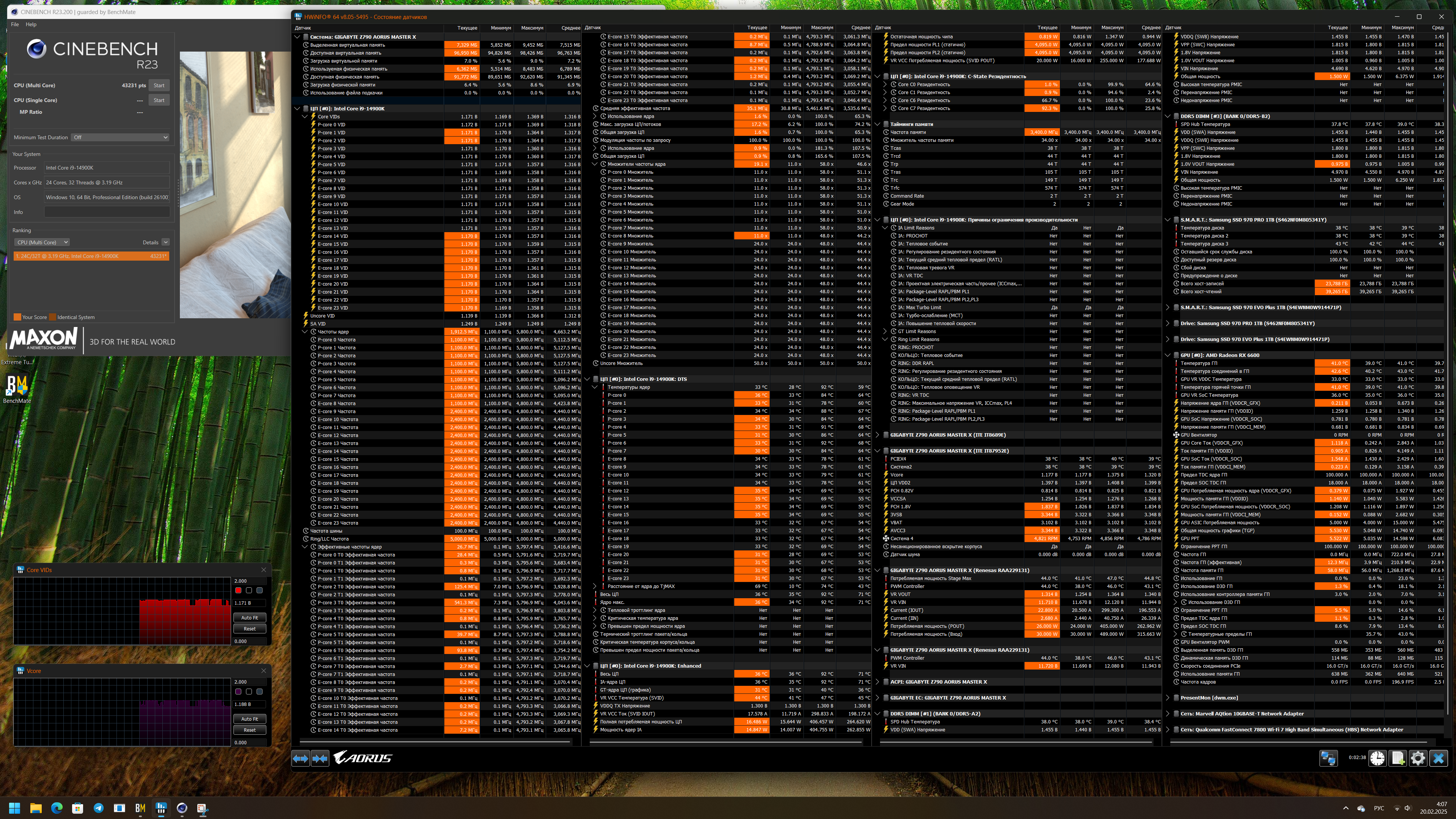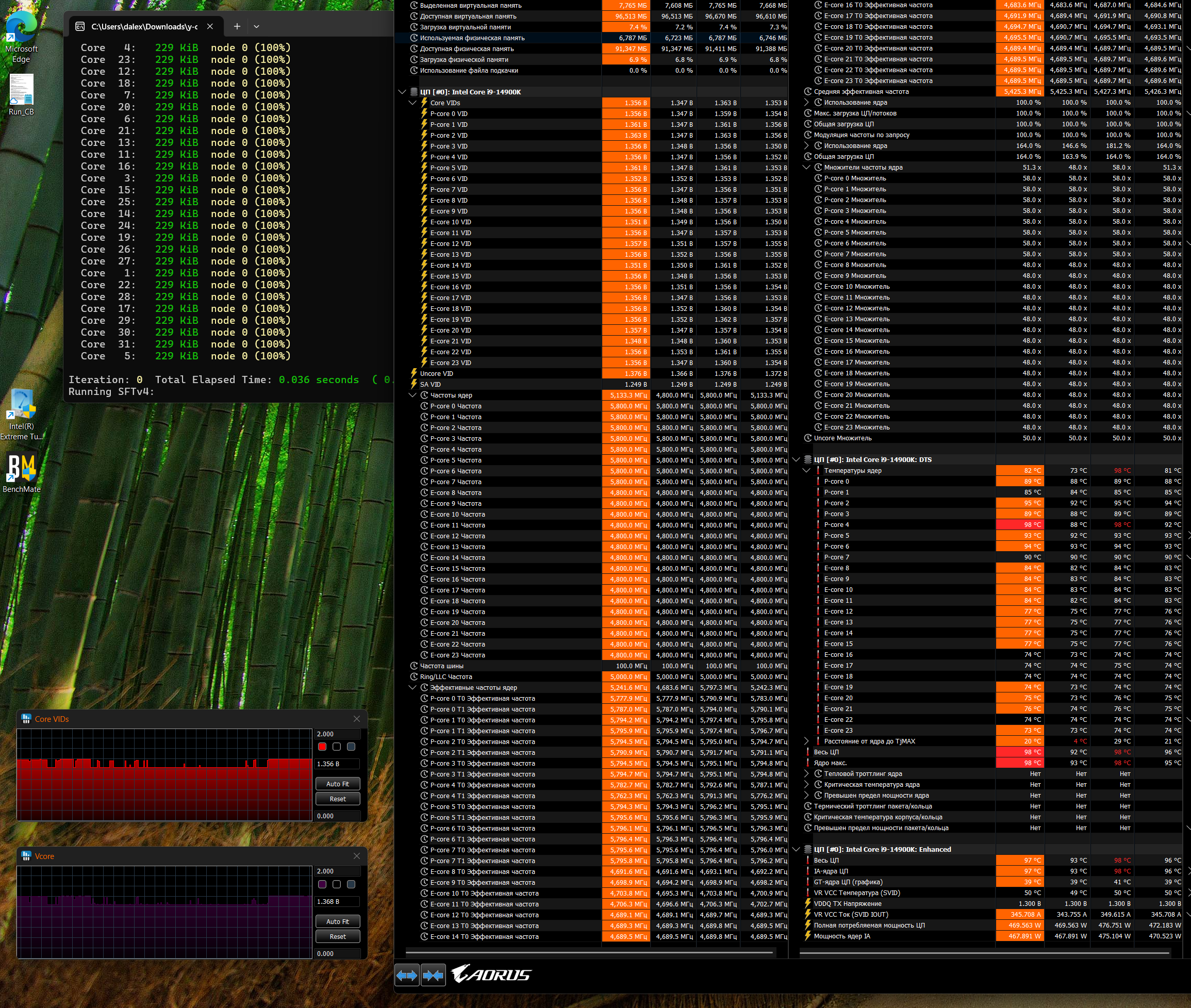 Посмотрим, может быть чутка смогу сдвинуться по эффективности теплоотвода и осилить 450 Вт где-то вместо пиковых 440 на данный момент. Вообще же, это больше для души. Потестировал вчера, оно на 6 ГГц в типовых задачах (компиляция C++ проектов в 32 потока, разворачивание виртуальных машин и т.д. не жрёт и 150 ватт. Даже Е-ядра не успевают буститься выше 4.6 ГГц в чем-то кроме стресс-тестов. Но понятно, что стресс тесты, особенно использующие AVX, кладут на лопатки троттлингом, делая бессмысленной установку множителя х60 в биосе. По факту, в том же синебенче оно просто через секунд десять ставит множитель 58 и существенной разницы нет между 60 и 58 по производительности вообще. Если только заморочиться с подстройками напряжений, чтобы побольше выжать в плане эффективности… Опытным путем установил, что в синебенче оправдывающая занятие разница между 58 и 60 появляется только если выморозить комнату градусов до 19.