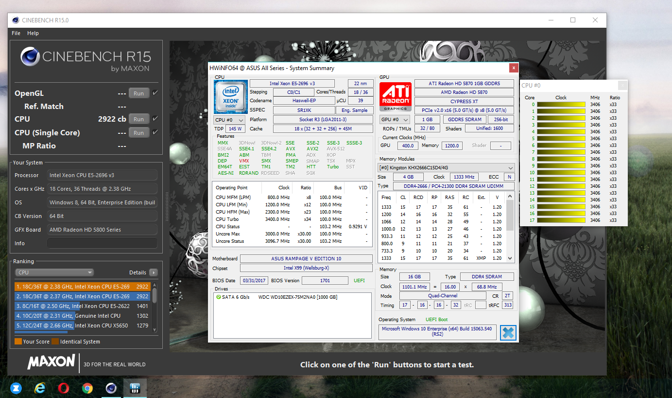 всё же взять зион е5 2696v3, разлочить его, убратт НТ и получить теже 3.9-4.0Ггц с 18 ядрами