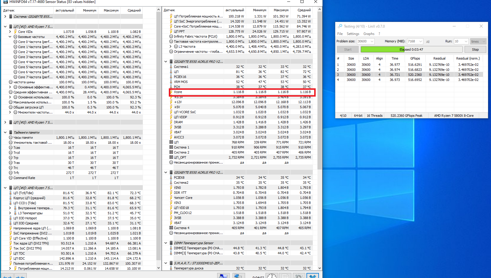 Ну так и все. Погоняй еще, ради пущей уверенности, Y-cruncher (Stress Test). Если там вылетов/ребутов не будет, то просто забей на эту невязку в LinX 0.7.0. И да, кстати, а ТМ5 с пресетом Extreme или AbsolutNew от Anta777 без ошибок проходит?