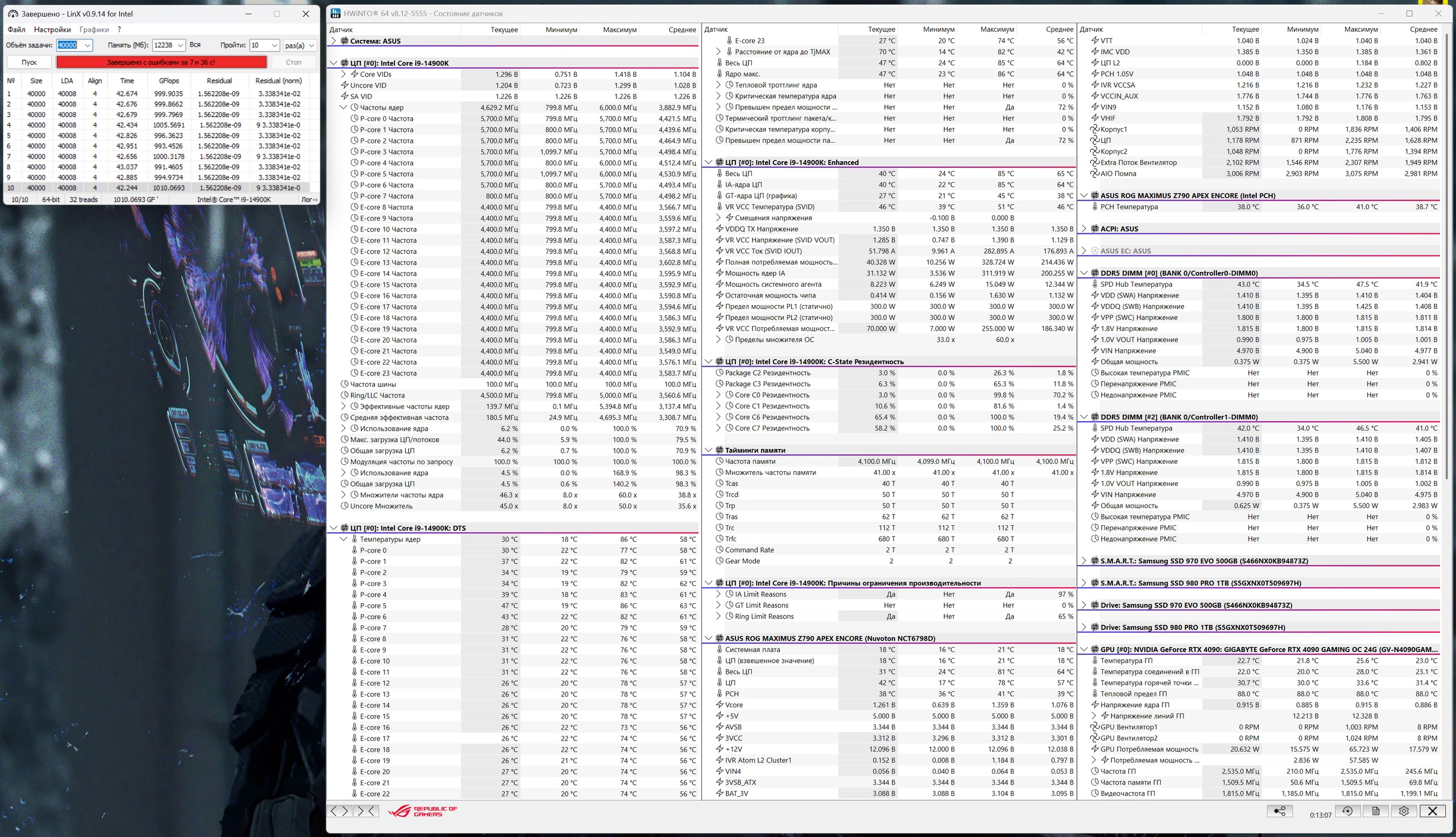 Ещё на примере мутантов, есть 13950HX, на нём 5.6/4.4 стабильны при 1.425 если в комнате меньше 24-25 градусов. Если больше, то наваливай 1.44, иначе будет капризничать. При этом, если опустить Е-ядра до 4.2, то такого прикола не наблюдается.