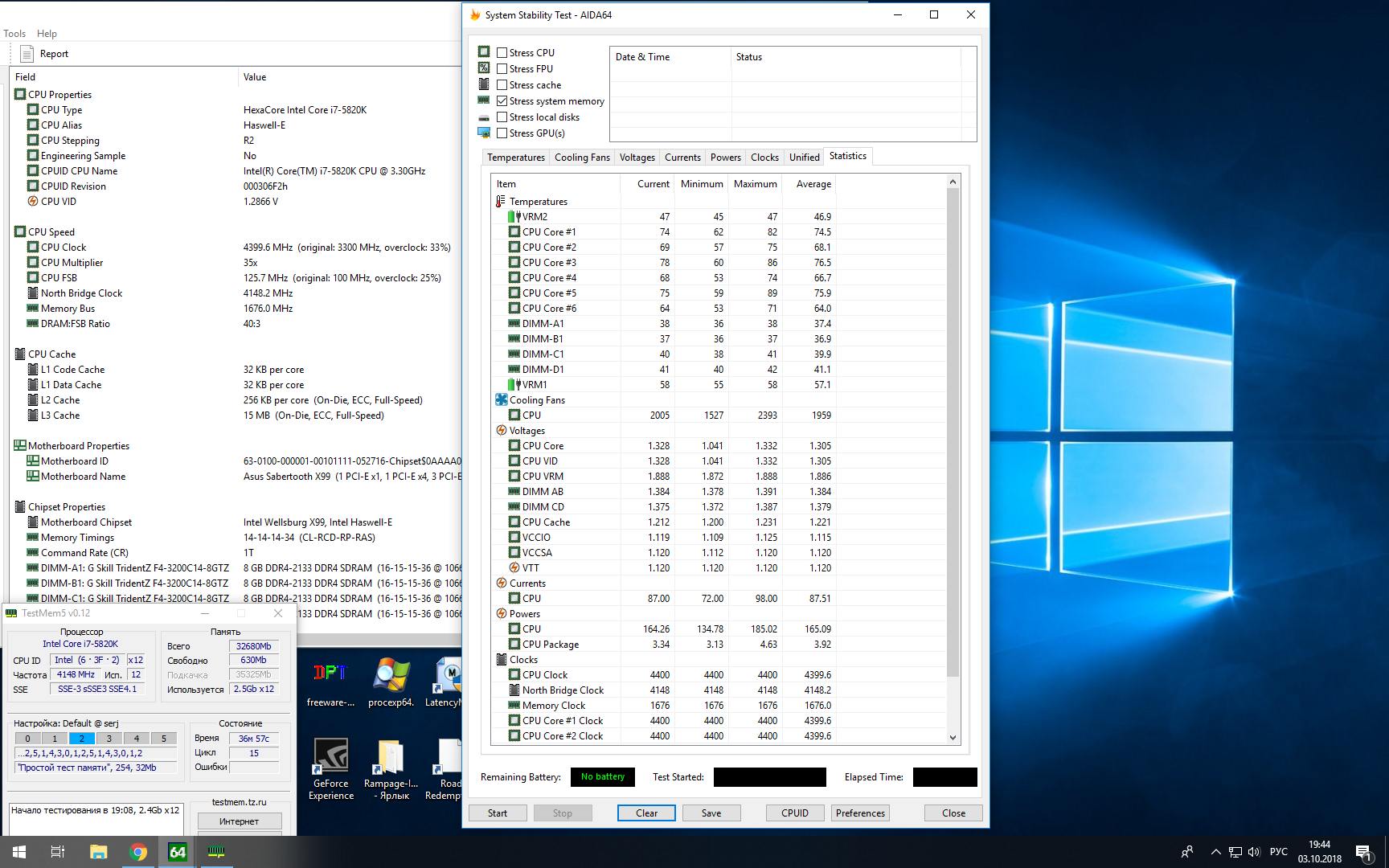 + можешь попробовать сменить/добавить XMP на а ля мои/другие c помощью Thaiphoon Burner может чего и даст, но у меня такое ощущение что на 5820K и co. оптимум(по вольтажам) лежит в районе 3200.