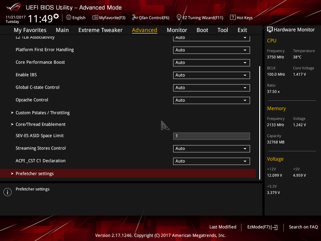 - Обычно поставляется в небольшой коробке без СО. - Штатно имеет базовую частоту 3.6ГГц, частоту 3.7ГГц (технология Turbo Boost) при обычной многопоточной нагрузке (Blender n-cores render) и 4.1ГГц (технологии Precision Boost и XFR) при однопоточной нагрузке (Cinebench R15 single core). - Штатное напржение питания 1.35В. Может возрастать до 1.45В на отдельных ядрах во время работы Precision Boost и XFR. - Энергоэффективность средняя, требования к СО (TDP) - 95W. Энергопотребление порядка 12Вт в простое и 137Вт в обычной многопоточной нагрузке (Blender n-cores render). - По сравнению с R7 1700 имеет увеличенный промежуток XFR (100МГц вместо 50МГц), а также увеличенные технологией SenseMI показатели температуры на 20 градусов (например, 90 при реальных 70).
