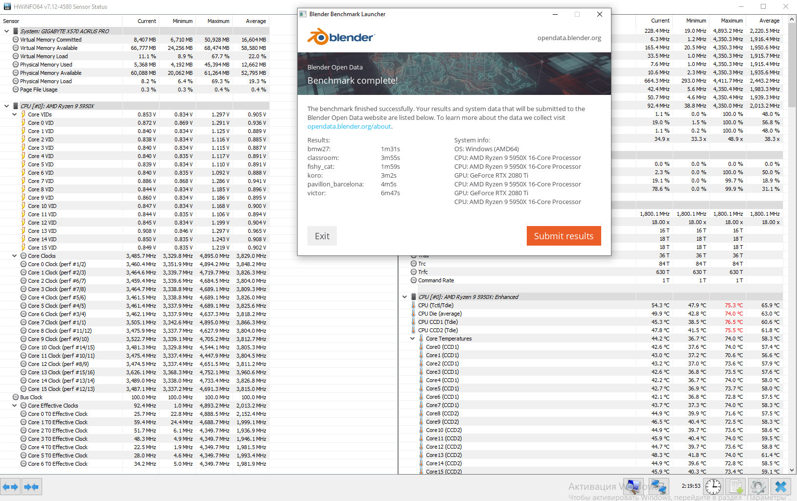 С какой стати, особенно имея крайне негативный опыт общения, с вашей, весьма противоречивой персоной, я обязан какие-то тесты вам показывать? Вы тут неоднократно демонстрировали что вообще не в курсе стоковых значений, синтетических тестов, для данного процессора. Цитировали какие-то жёлтые обзоры, в которых измерения производились для уже разогнанного 5950 и писали кучу других подобных, высосанных из пальца "аргументов". Из всего перечисленного сложилось впечатление что что-бы я не показал вы это обязательно извратите, и приложите максимум услий, к тому что-бы выставить меня невеждой. Так стоит ли стараться? Просто считайте невеждой так. Вас ведь всё-равно ничем не убедить. А настройки и скриншоты своих разгонов я уже скидывал, в любом случае. И не однократно, а раза 3 или 4, на разных этапах. В частности в ветке о моей материнской плате лежит один. Там Cinebench. Если вас интересует не падает ли у меня Blender Benchmark, то нет, не падает. Этот тест я запускал несколько раз. Проходит, без ошибок, все сцены которые в нём есть. И для CPU и для GPU. Вроде он и то и другое тестирует, насколько я помню. У меня сохранился один скриншот с него, но я уже не помню какие там были настройки. Возможно это было 140 или 135W, при лимите 75С, до замены СЖО. Что конкретно вы хотите знать об этом тесте? Значения для 5950?