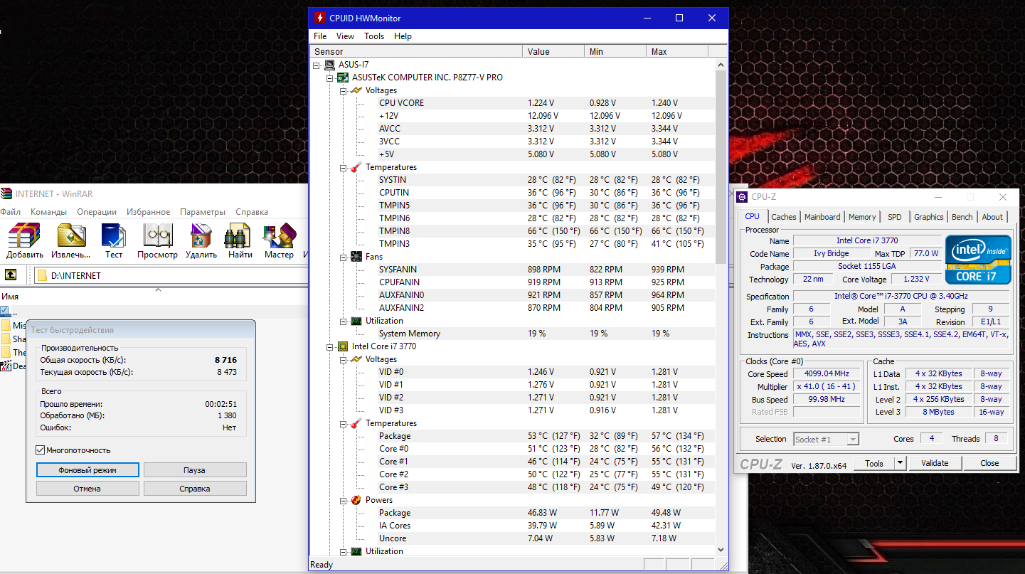 Запустил тест винрара. Вот такая "байда". Я покамесь 40 множитель оставил, а то 41 греется ппц. Все-таки заказал мх-4 за 450 рублей))) Просто в наличии был только алсил-3