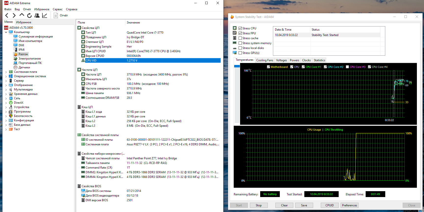 Добавлено спустя 7 минут 12 секунд: По теме: у меня 3770, что я недавно приобрёл на ебае, греется до 80-90 градусов на частоте 4100) Думаю, проблема не только в лучшей термопасте всех времен и народов АЛСИЛ-3, а дело в самом камне и "терможвачке". Советуете "снять скальп"?) Покамесь я вернул частоту на дефолт и 65 градусов в стресс-тесте... вот такая большая разница! В биосе я лишь clck ratio меняю и все, остальное авто. Напряжение выставляется 1.316, нома же. Что делать, посоветуйте:) ЗЫ: вертушка Thermaltake Contac 30, мать azuz p8z77v-lx