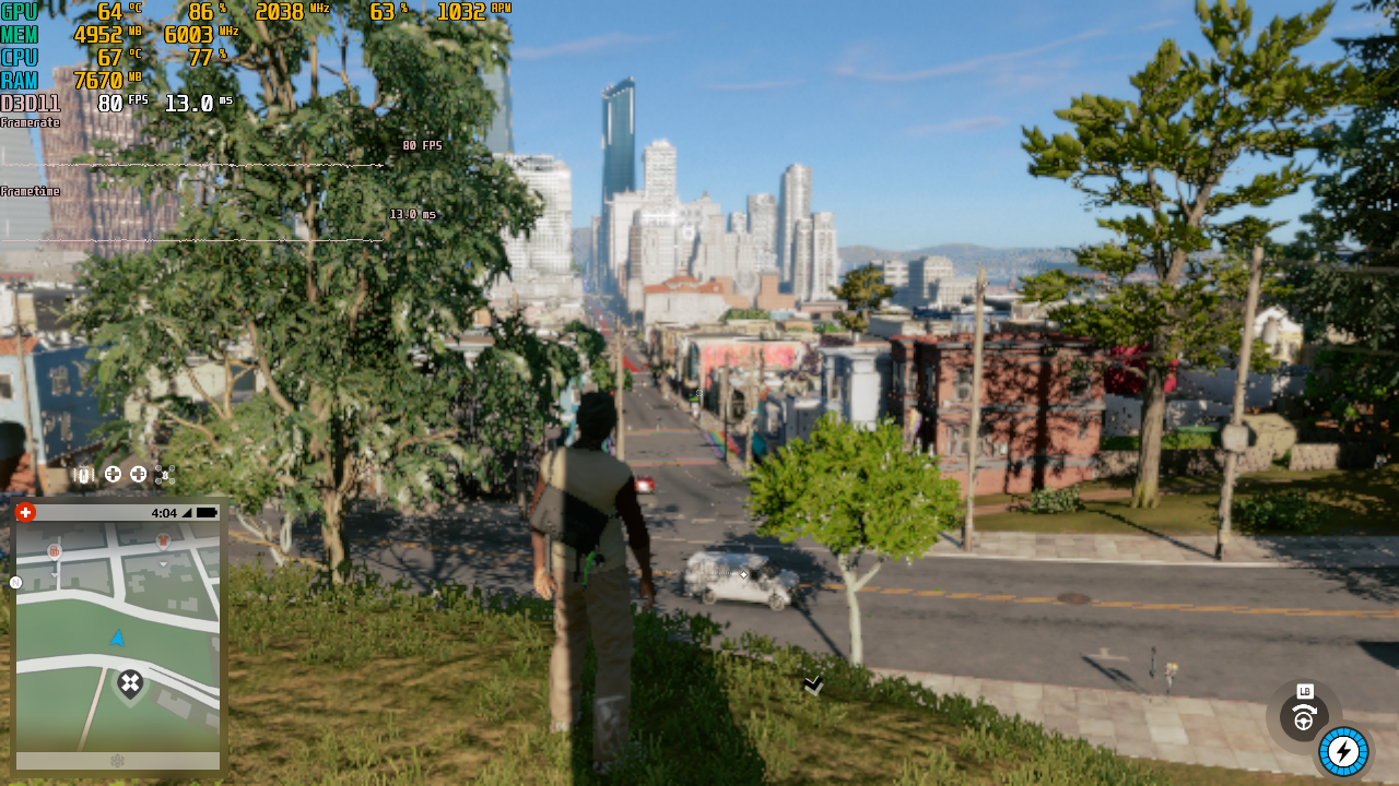 Добавлено спустя 15 минут 38 секунд: разница такая в этом месте, так как тут максимальная загрузка ЦП по диспетчеру задач вообще все потоки на максимум , если просто кататься по городу , то разница 5-6фпс , тут кому как... Но по ощущениям плавность выше с 4000 и загрузка уровня и фасттревел быстрее , игра на NVMe PCI-e 4x SSD