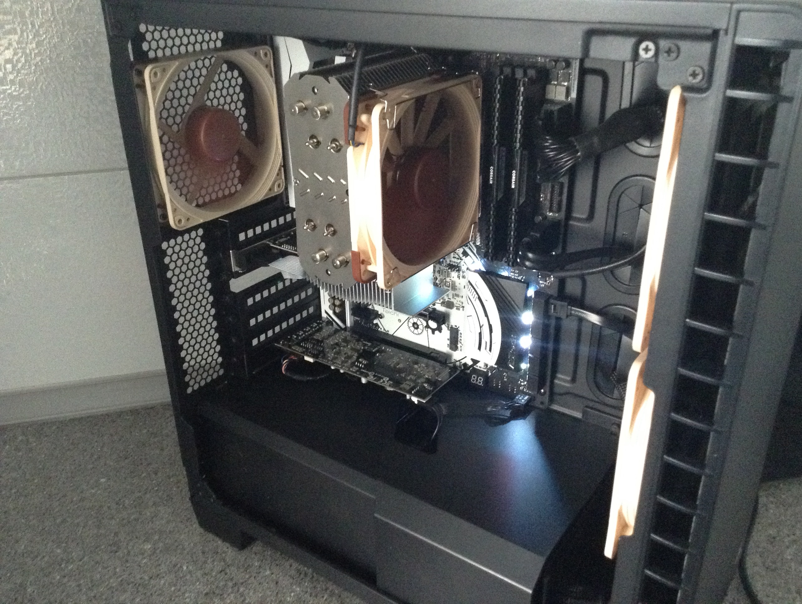 Немного улучшил охлаждение r7 1700 опустил "типо по саласкам" вентилятор пониже на выдув. чтобы были параллельны с процессорным кулером. Перемазал термопасту тоньше выйграл -1 градус получил 53 градуса в 100% загрузке всех ядер 3.7GHz 1.2v после часа прайма Короче вот так получилось